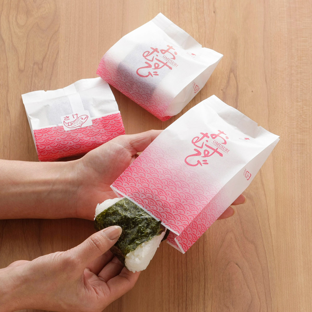 しっとり海苔の直巻きおにぎりが作れるおむすびパックです。海苔がごはんの水分を程よく吸収してしっとりと馴染み、乾燥を防いで風味を保ちます。しっとりとした海苔のおにぎりが好きな方におすすめです。