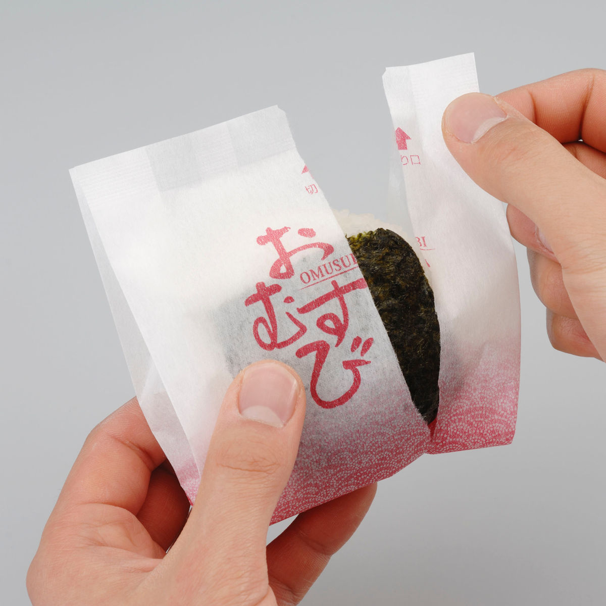 食べるときは切り口を切るだけなので、簡単に開封できます。開けたあとはパックごとおにぎりを持って食べられるので衛生的です。旅行先などでもサッと取り出して食べられます。