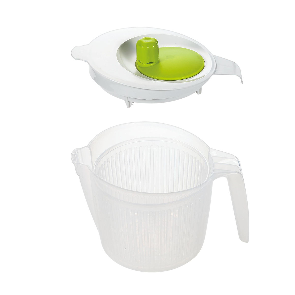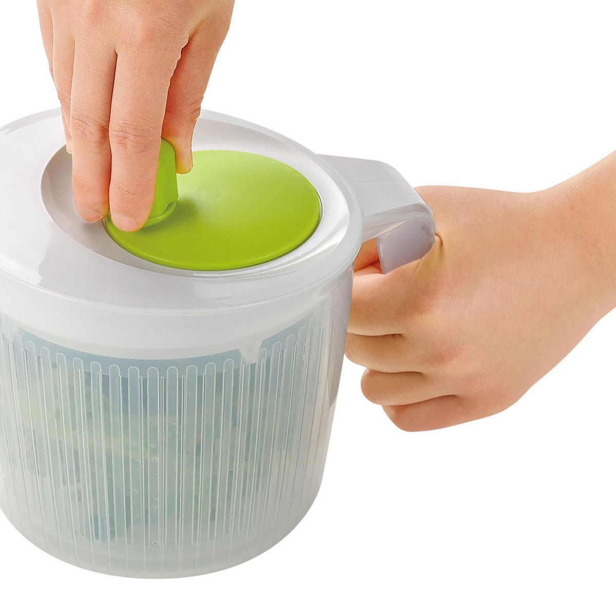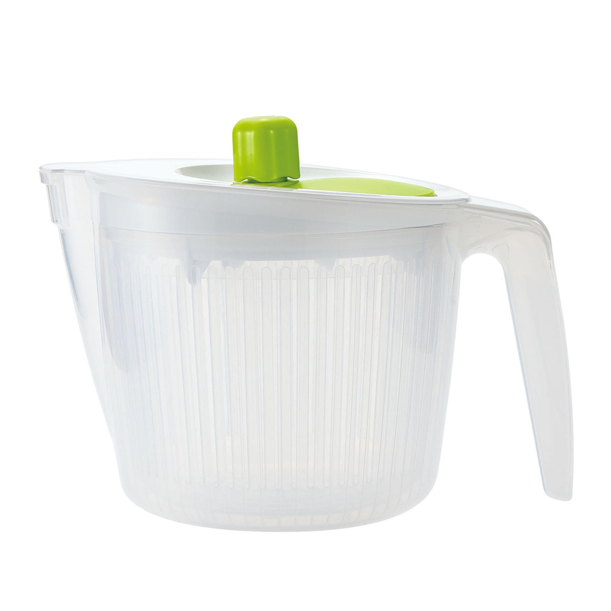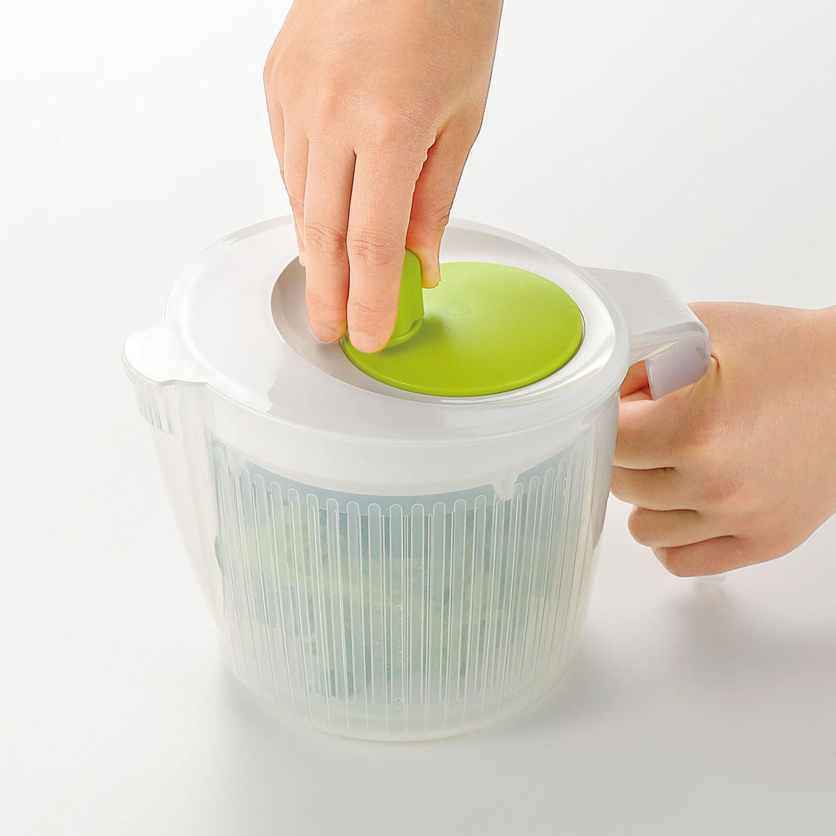 野菜の水気をしっかり切れるサラダスピナーです。遠心力で水分を外側に飛ばし、ザルよりもしっかり水を切ることができます。ドレッシングもよくからみ、おいしいサラダが味わえます。
