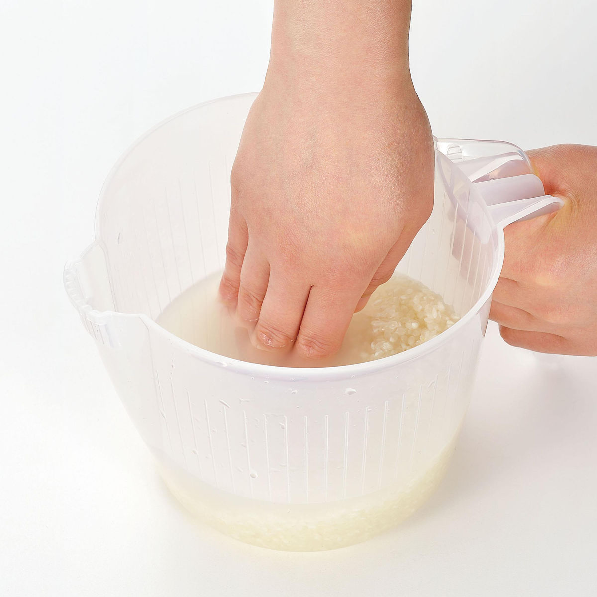 野菜の水切りだけでなく、米研ぎにもお使いいただけます。