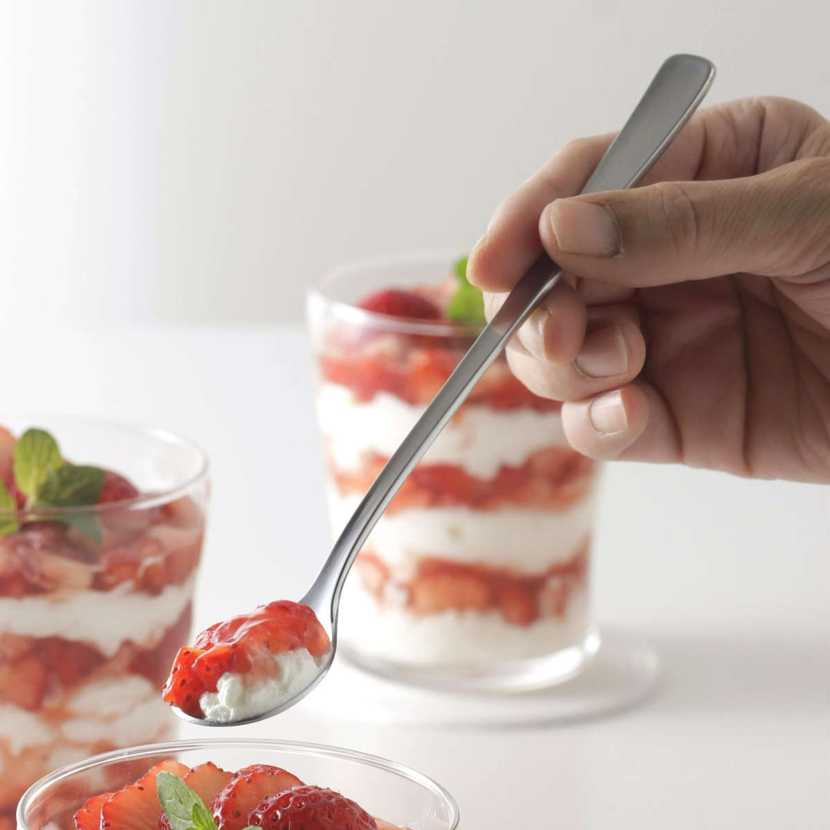 全長約18.1cmのロングサイズで、パフェやフロート、深めのグラスやマグカップに最適です。長い柄は混ぜやすくすくいやすい実用的な形状が魅力です。