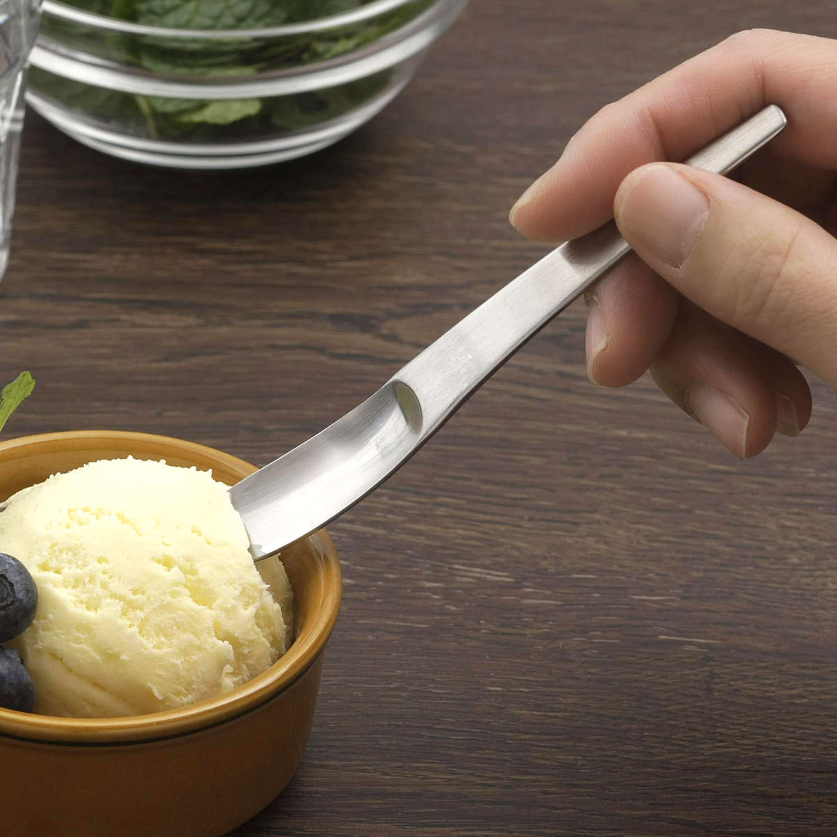 アイススプーンとしても使え、カップアイスもすくいやすい形とサイズです。シンプルなデザインなので、おもてなしのシーンにも便利です。