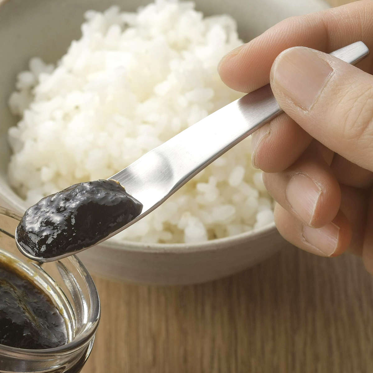 小さな瓶から食材をすくいやすいスリム形状の「ご飯のお供スプーン小」です。幅が細く小瓶の口にもスッと入り、ごはんのお供・薬味・調味料なども瓶の底まできれいにすくえます。
