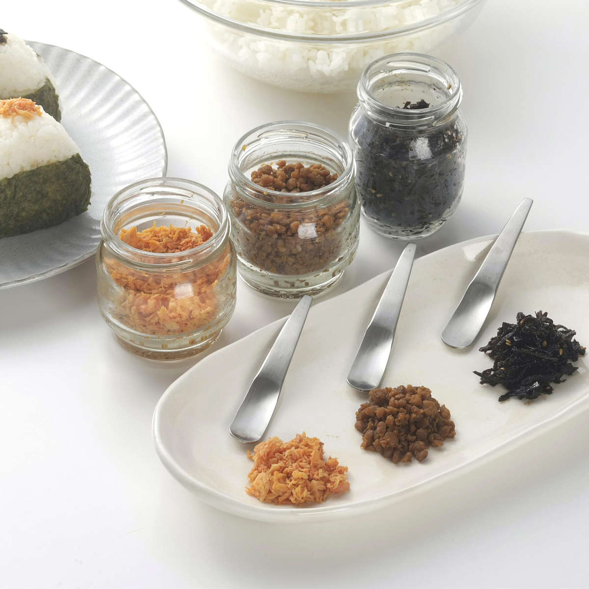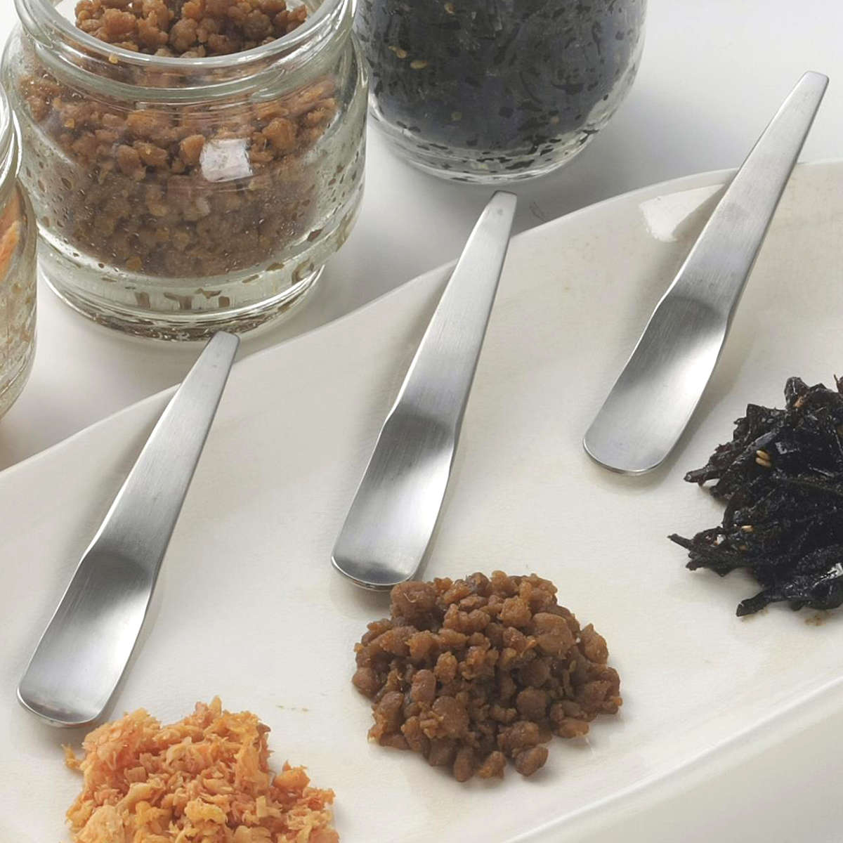 ●小さな瓶にスッと入るスリム形状が魅力の、ご飯のお供スプーンの小サイズ3本入です。
