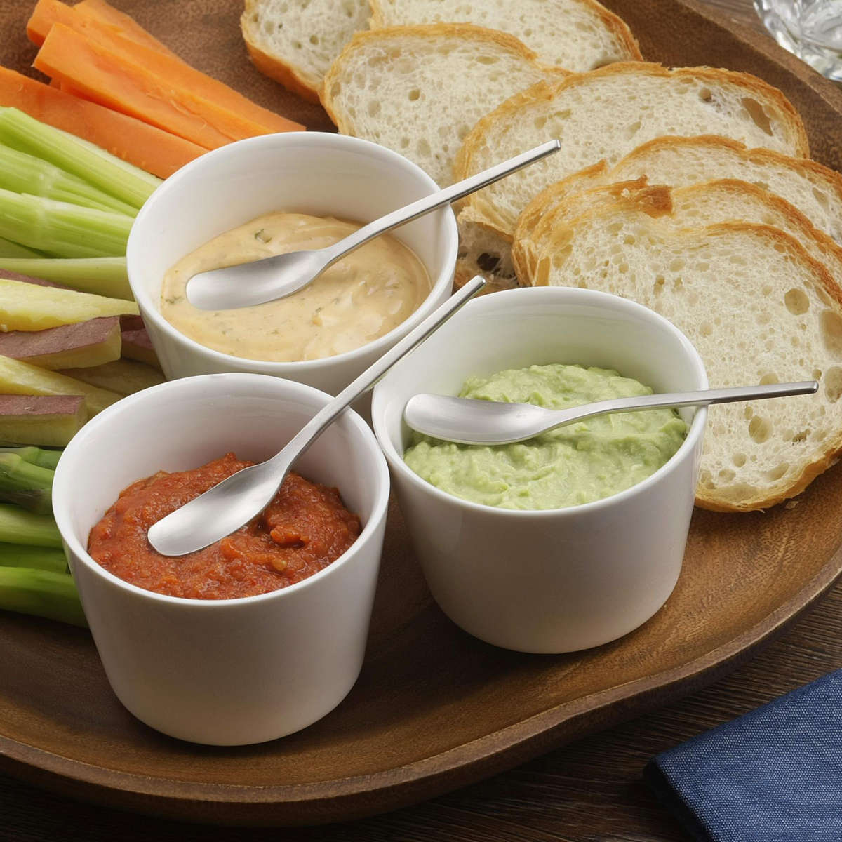 ディップやジャムにも使いやすい浅めの形状で、くぼみが浅いためすくうだけでなく塗り広げる作業にも向いています。ディップソース、ジャム、マヨネーズなどにも相性抜群です。