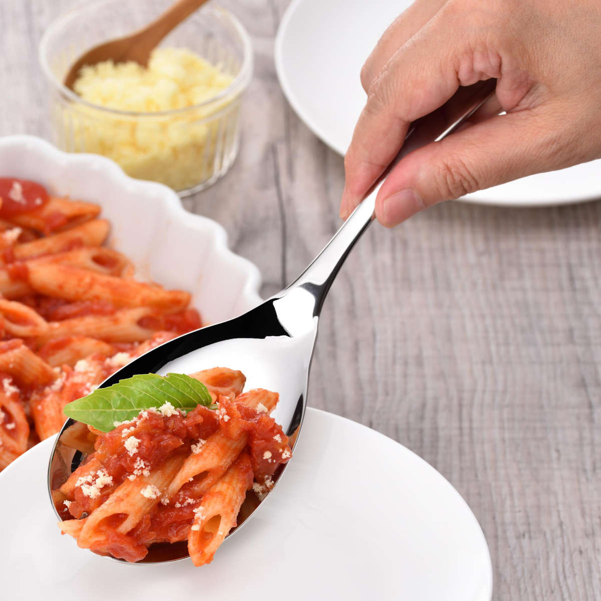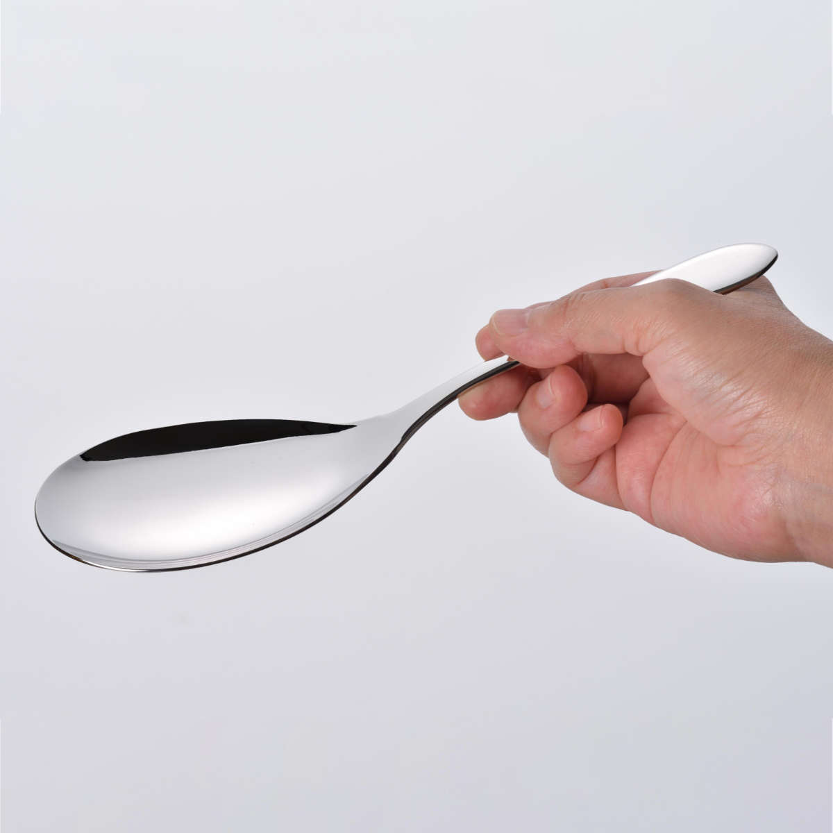 軽くて扱いやすく、小回りが利く約90gのスプーンです。盛り付け作業もスムーズに行え、日常使いにぴったりの扱いやすさです。