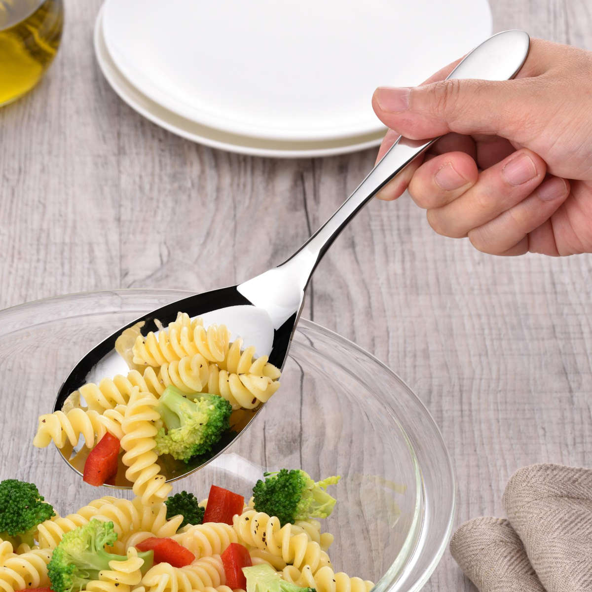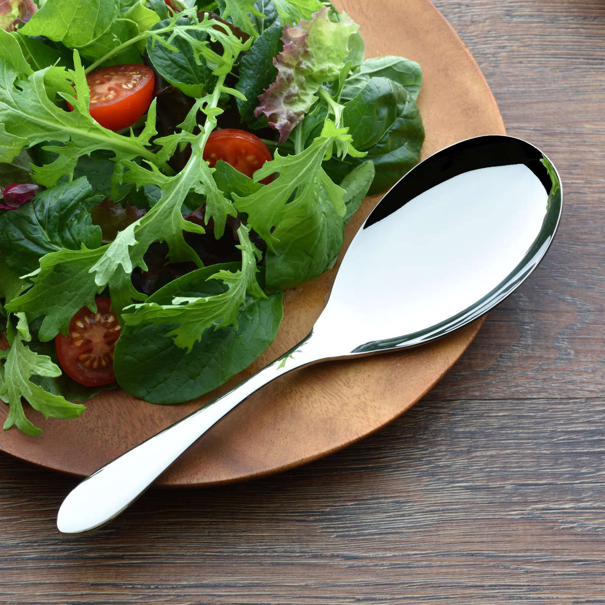 小さめでも皿部が大きく、取り分けがしやすいスプーンです。すくい部は約6.3cm×9.5cmのワイド形状で、小サイズでもしっかりすくえる設計です。サラダや煮物、和え物などの大皿料理を、手早くきれいに取り分けられます。