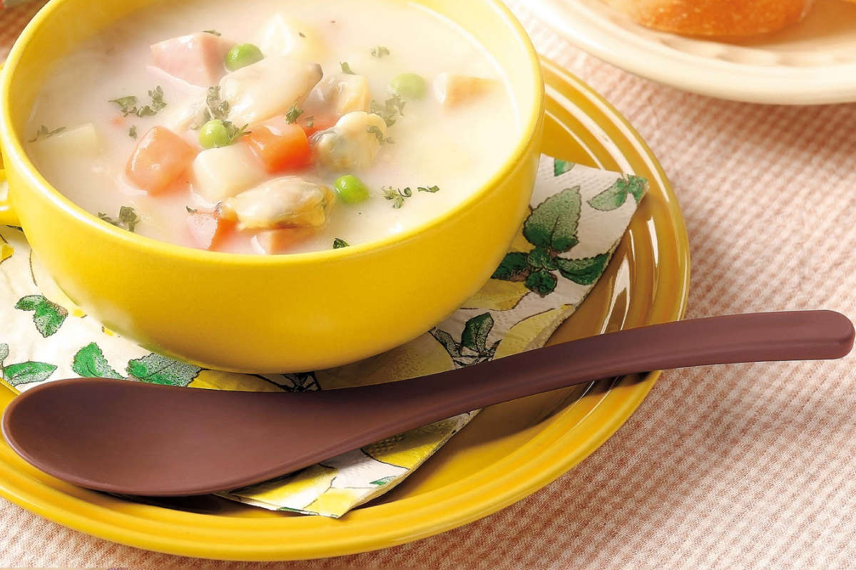 ●熱が伝わりにくい樹脂素材を使用しており、熱いスープやおかゆも安心して食べられます。