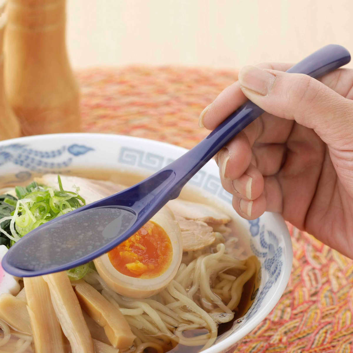 先端が細長く、口に入れやすくスッと抜ける形状のソフトスプーンです。子どもやご年配の方でも扱いやすく、使ってわかる食べやすさが魅力。和・洋・中を問わず、ごはん物・丼物・汁物まで幅広い料理にスムーズに使えます。