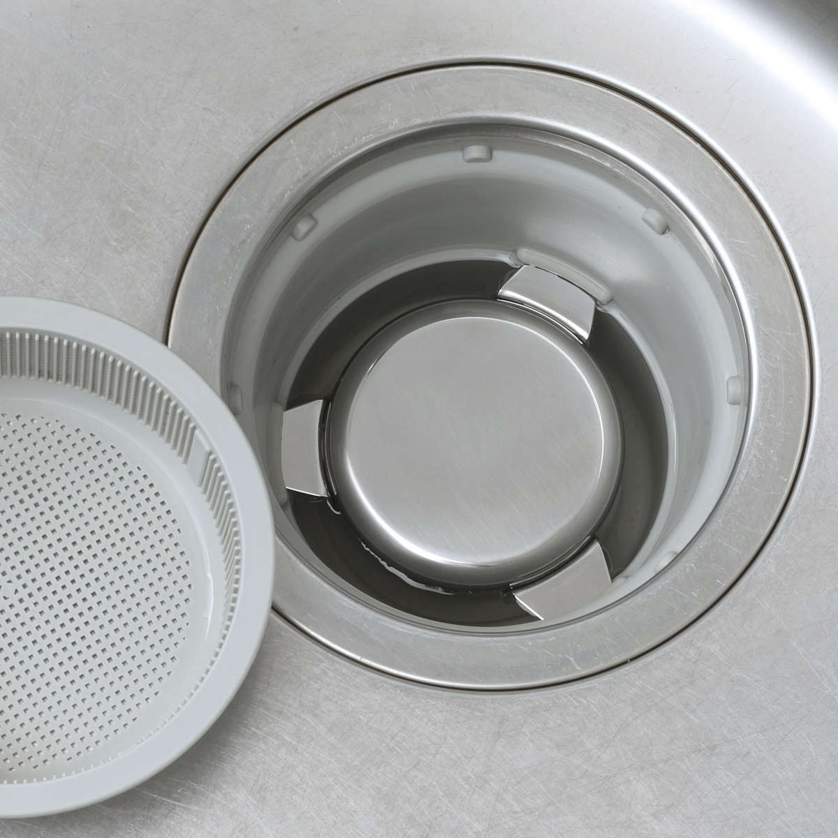 ステンレスならではの滑らかな表面で、ヌメリがほとんど発生しないのが特長の排水トラップです。排水口の底に溜まりやすい汚れをしっかり抑えることで、イヤなニオイの発生源をカットし、キッチン全体の衛生環境を大きく向上させます。