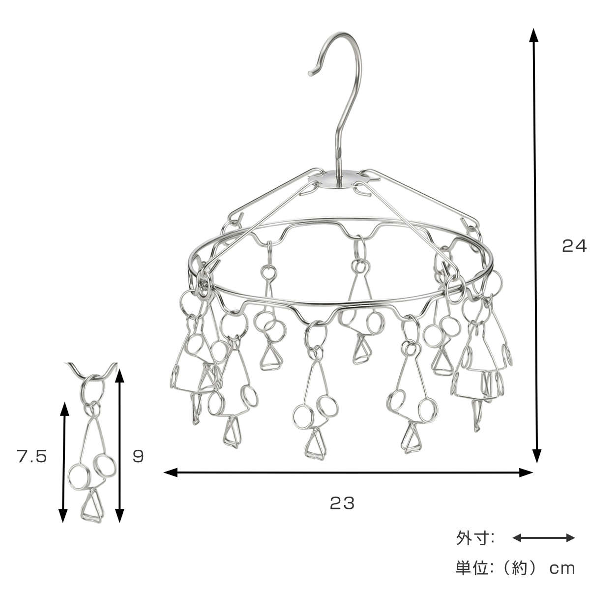 室内干しや狭いスペースでも邪魔にならないコンパクトな丸型10ピンチで、省スペースに干せるのも魅力です。靴下・ハンカチなど、少量の小物をちょっと干したい時にちょうどよく、洗濯物が少ない日でも無駄なく使える便利なサイズです。