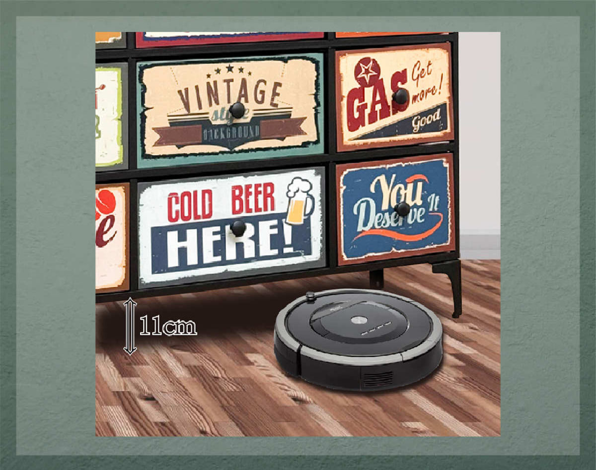 床暖房のお部屋でも熱がこもりにくく安心してお使いいただけます。本体と床の間には約11cmの空間があり、掃除機ヘッドやお掃除ロボットがスムーズに入り、お掃除もラクに行えます。