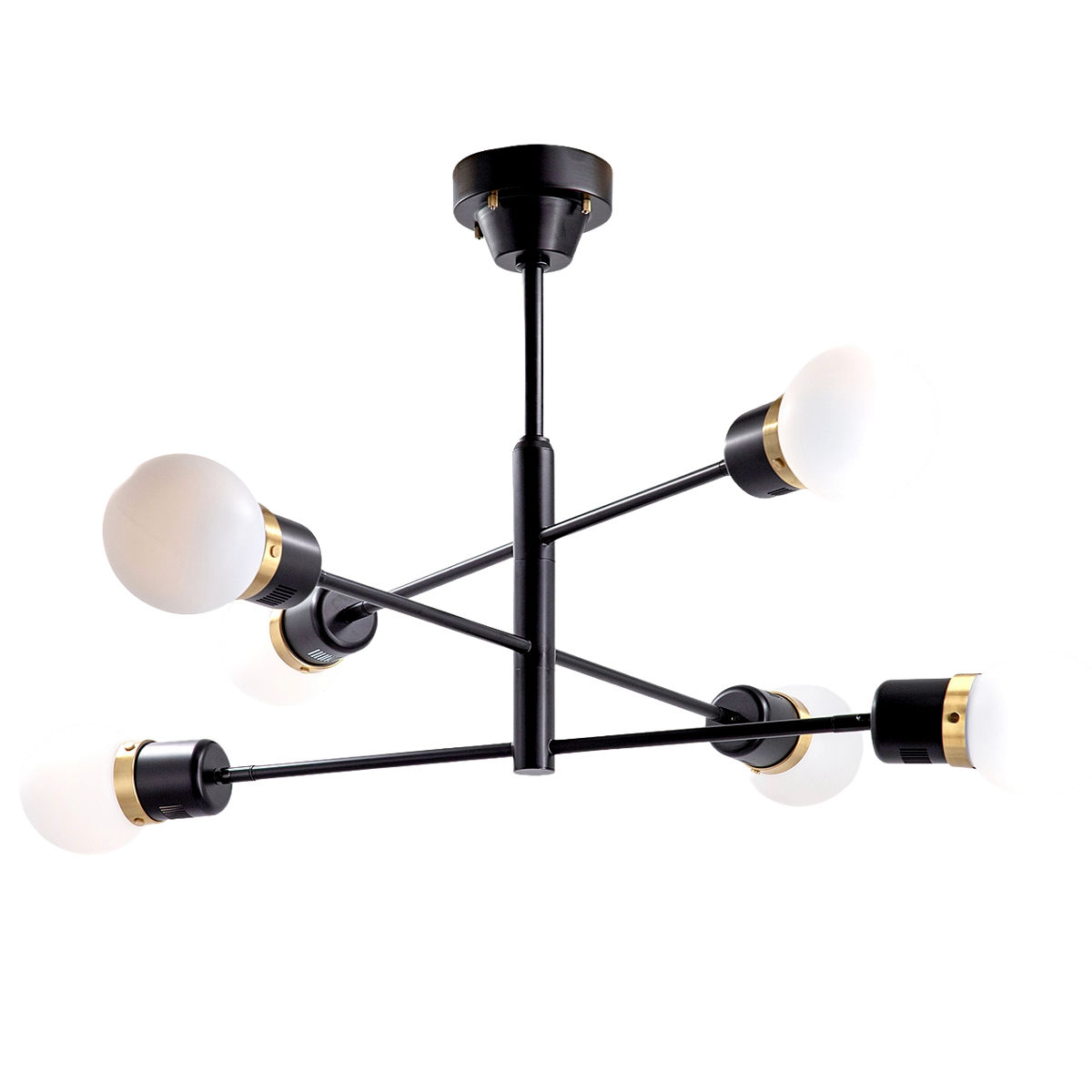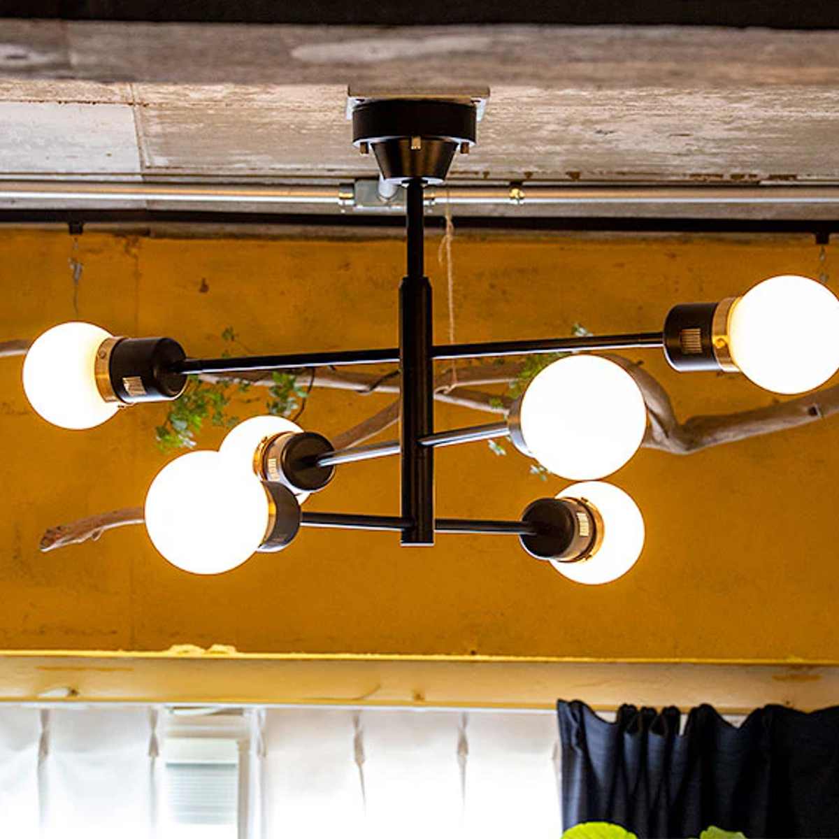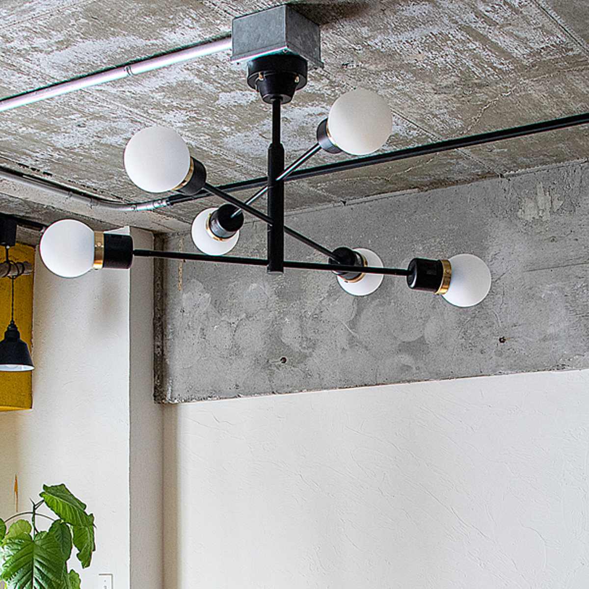 ブラック・ホワイト・ゴールドのコントラストが美しい、モダンで洗練された6灯シーリングライト。アクセントに真鍮(ゴールド)を使用し、上品で高級感のある空間を演出します。