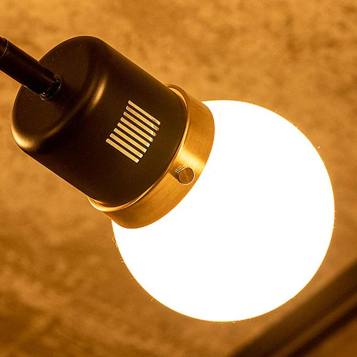 球体のシリコンシェードが光をやわらかく拡散し、空間に温かみをプラスします。