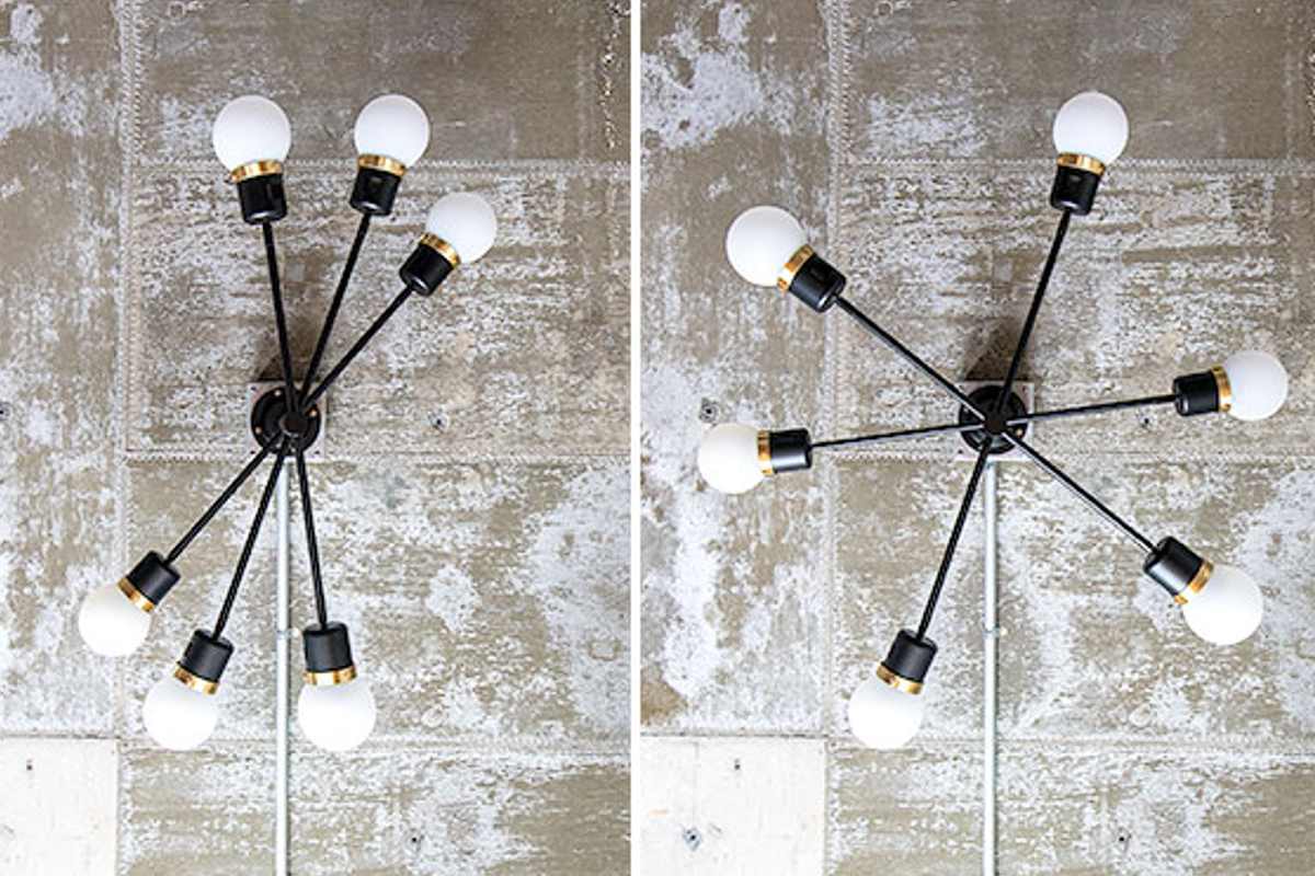 それぞれのソケットは上下左右に角度調整が可能。光の向きを変えることで、空間の雰囲気も自在に演出できます。