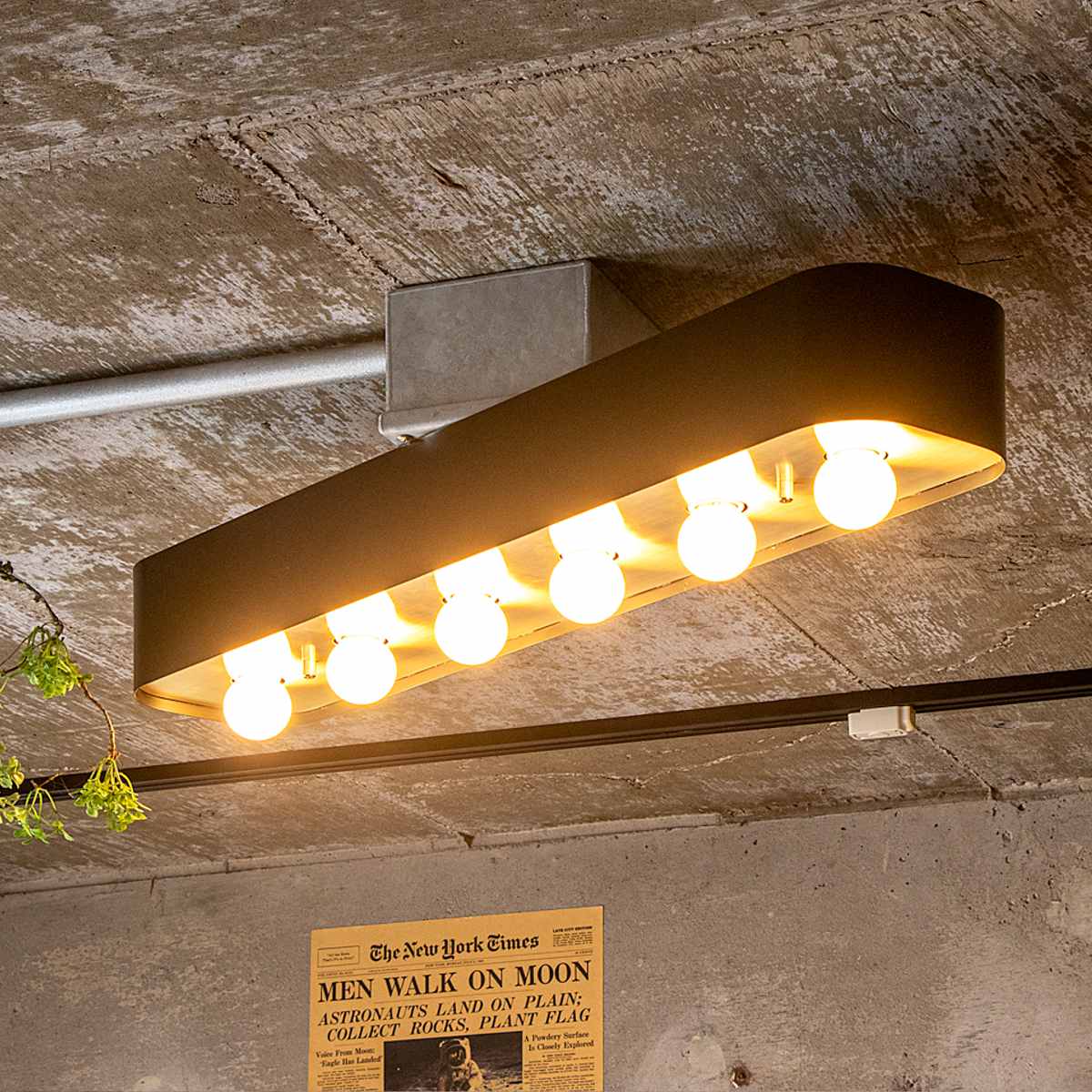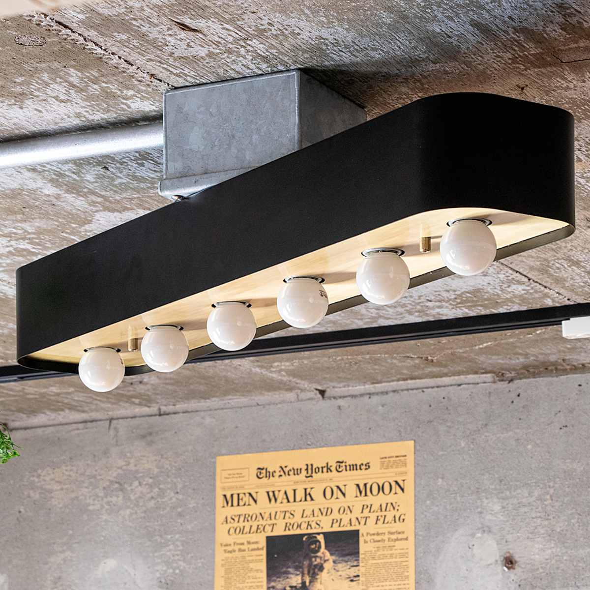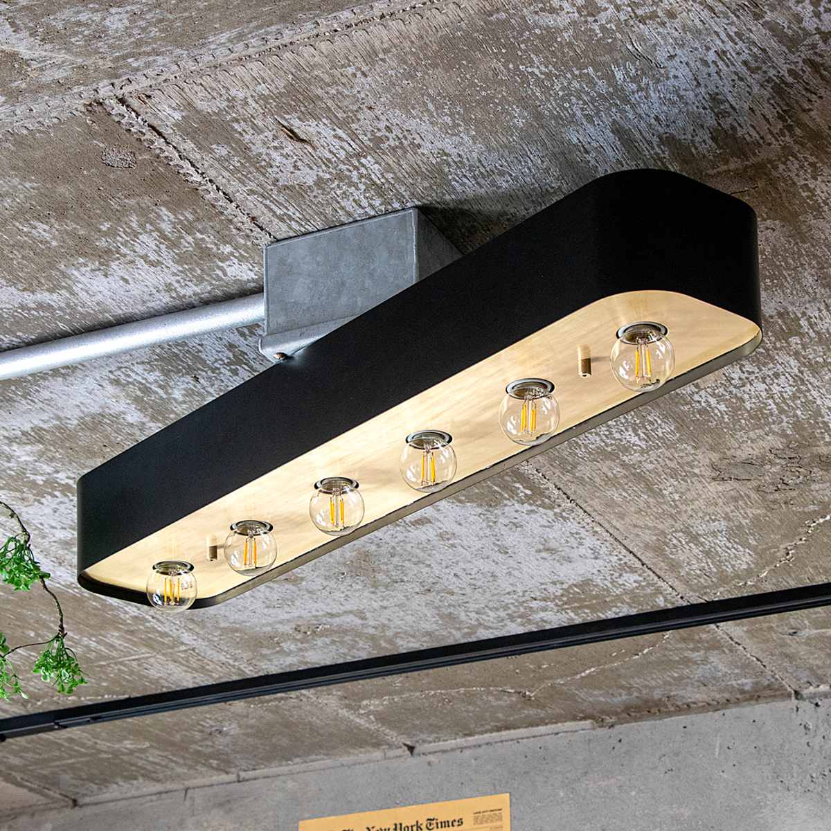 高さわずか約10.5cmのスリム設計。 天井をすっきり見せることで、空間全体に広がりを感じさせます。横に広がるフォルムは、一般的な照明にはない個性的なデザイン。 どこか懐かしさを感じるノスタルジックな雰囲気が、 お部屋をワンランク上の空間へと演出します。