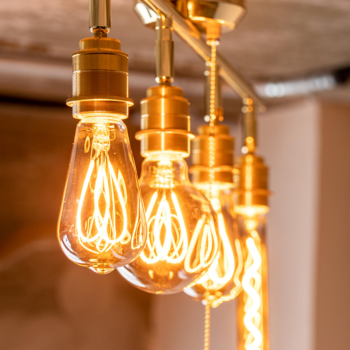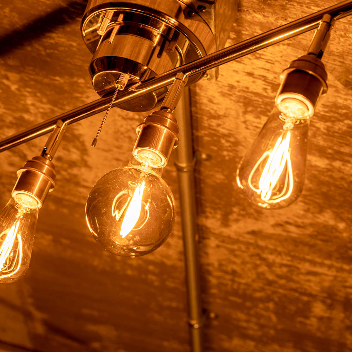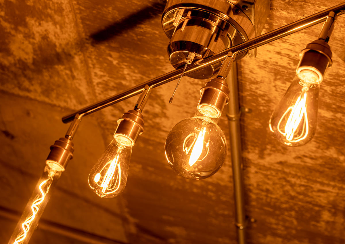 カタチの異なるエジソン電球を組み合わせて並べることで、より個性的でおしゃれな空間を演出できます。電球それぞれのフォルムやフィラメントの違いがアクセントとなり、シンプルな照明でもインテリアとしての存在感がぐっと高まります。