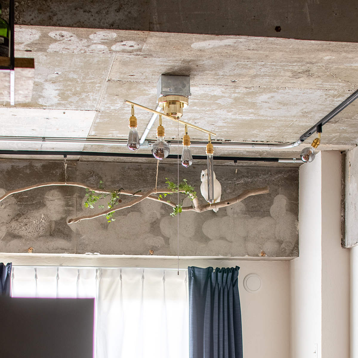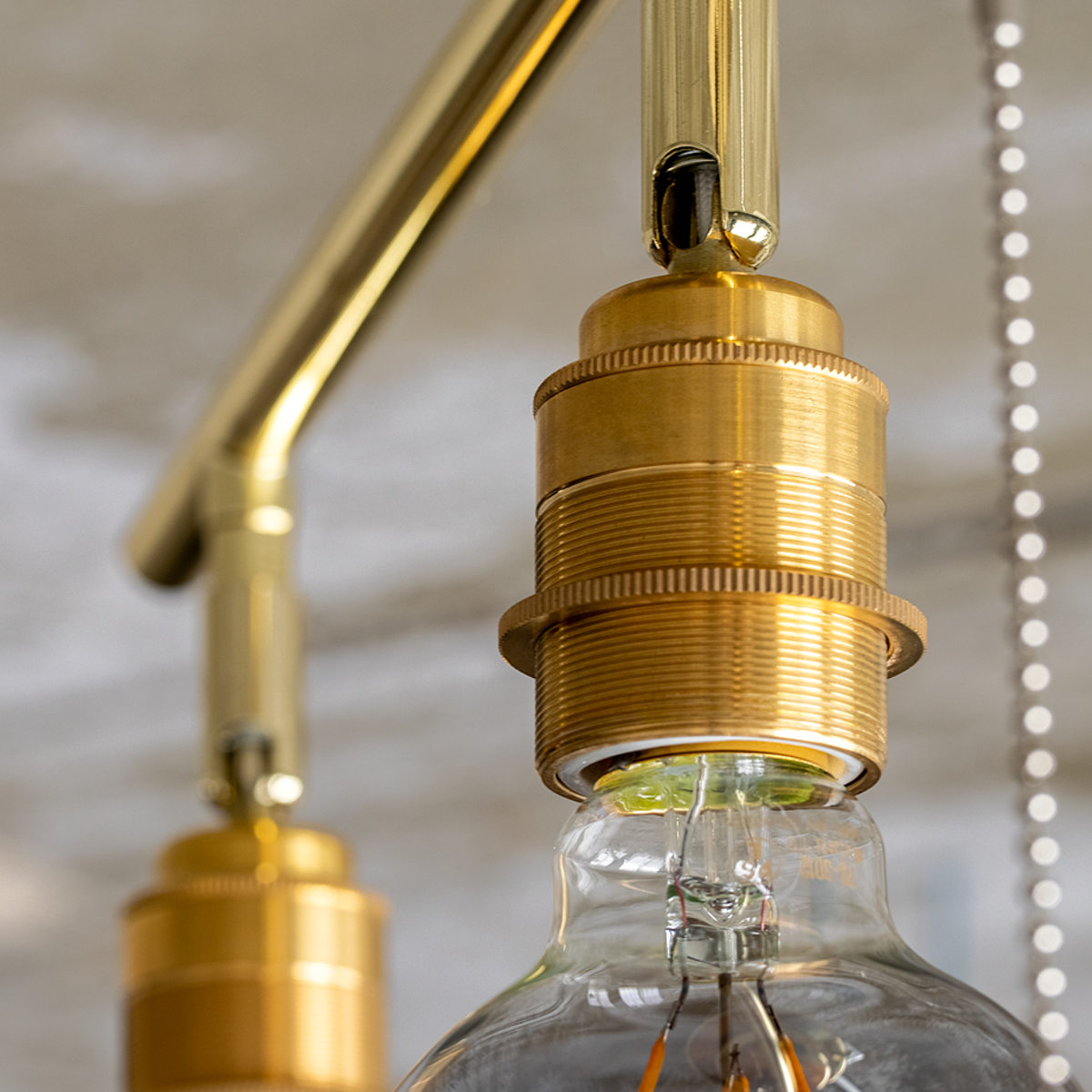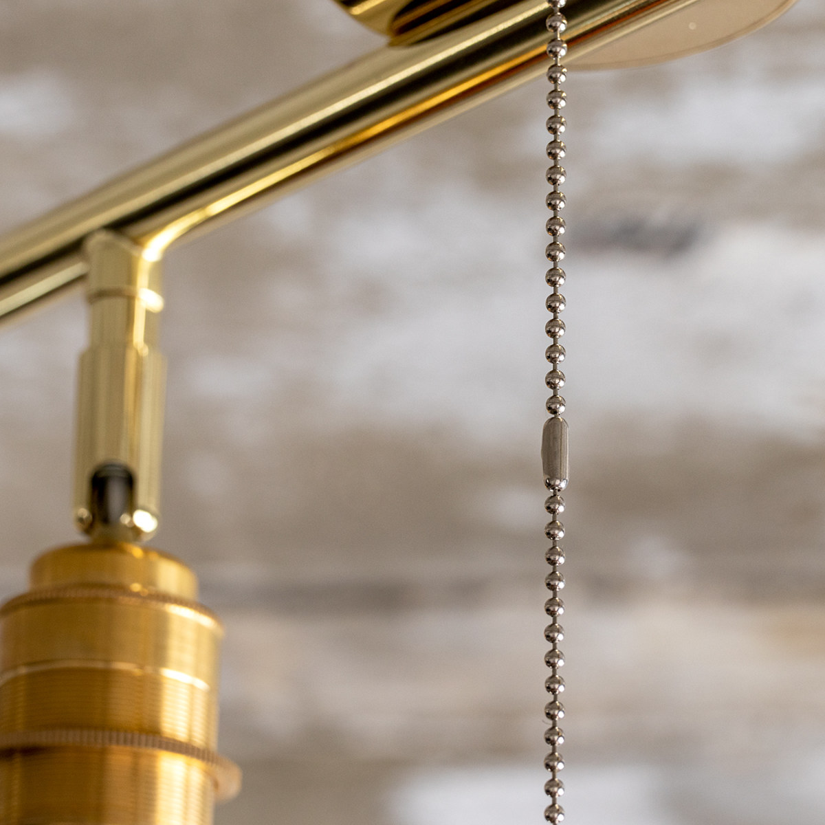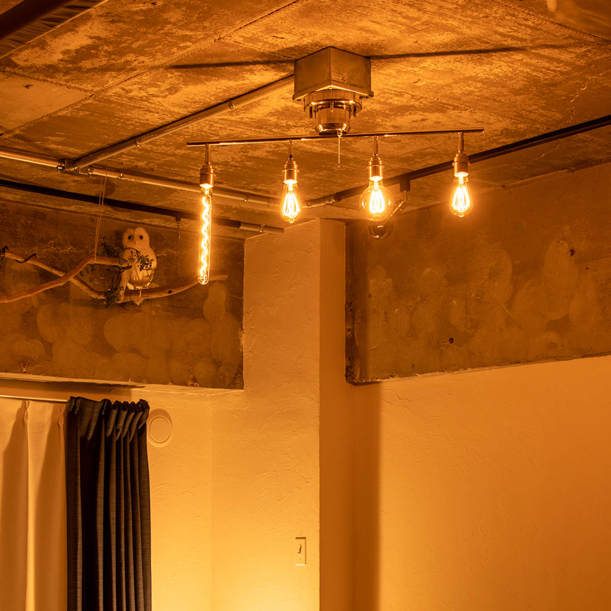 ソケット部分のカバーには真鍮を使用しています。エジソン電球のレトロな雰囲気とよく合い、全体の印象を引き立てます。天井に取り付けると目立ちにくい部分ですが、細部までしっかりこだわって仕上げています。