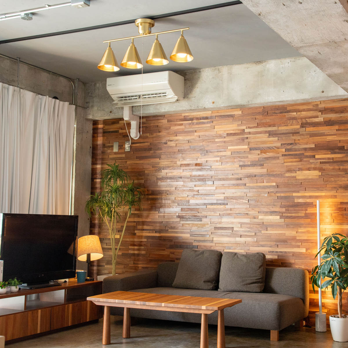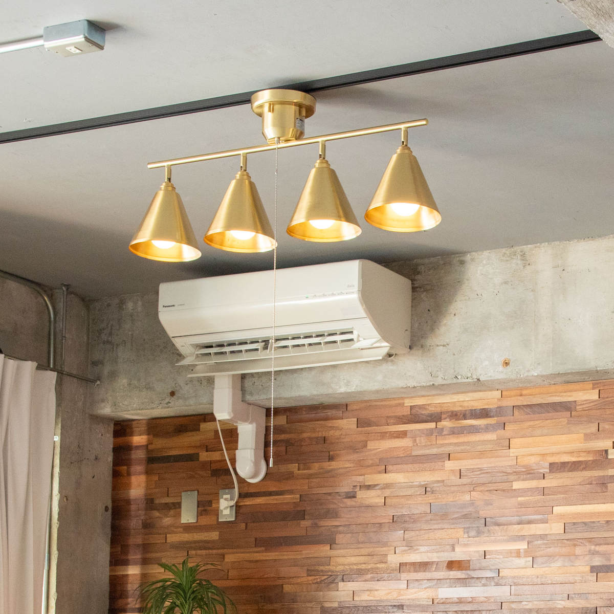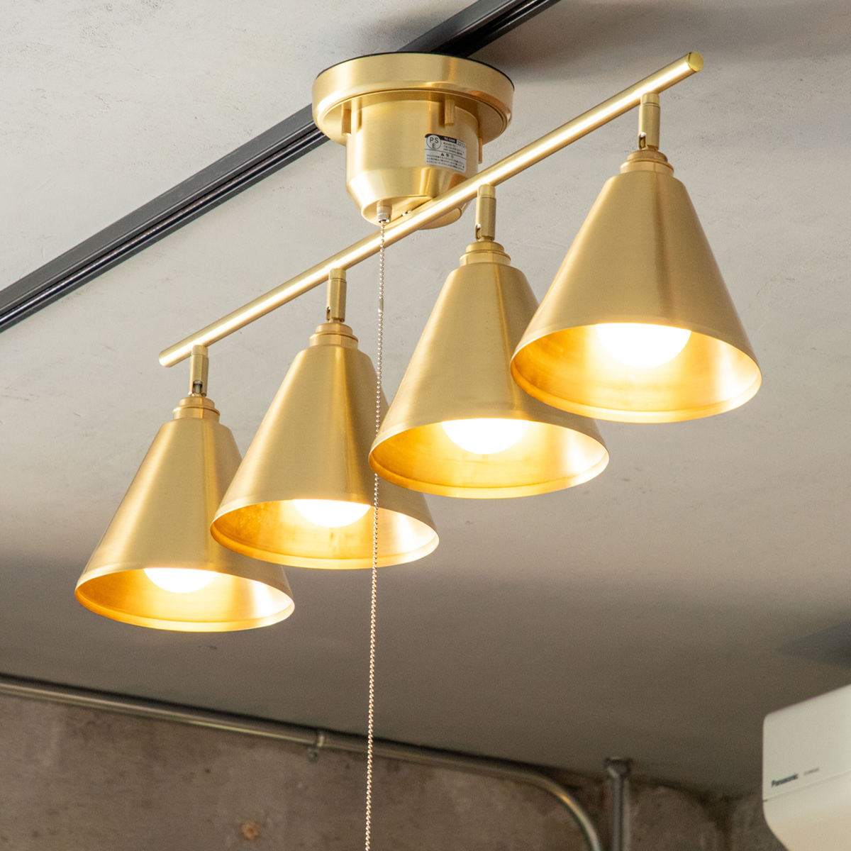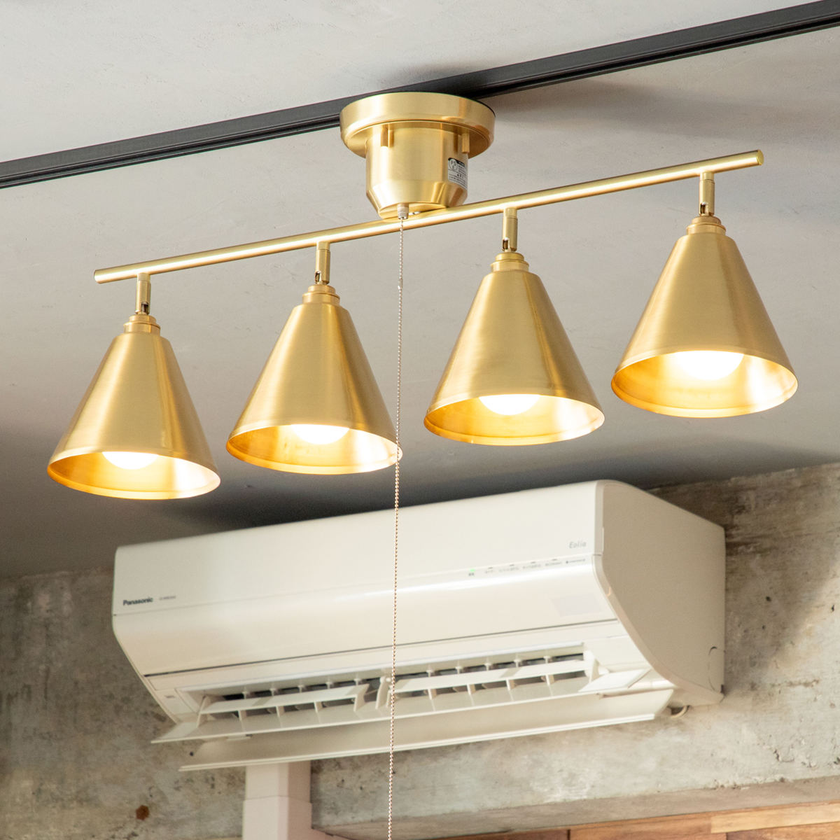 大きめシェードが映える、真鍮の4灯ライト