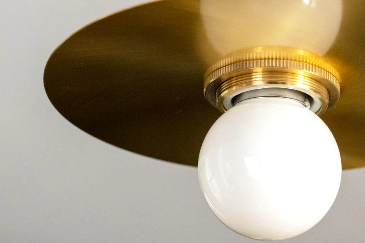 上質な真鍮素材を使用した、シンプルで洗練されたデザイン。 円盤型のシェードがアクセントとなり、空間に程よい存在感をプラスします。 電球付きですぐに使用できます。