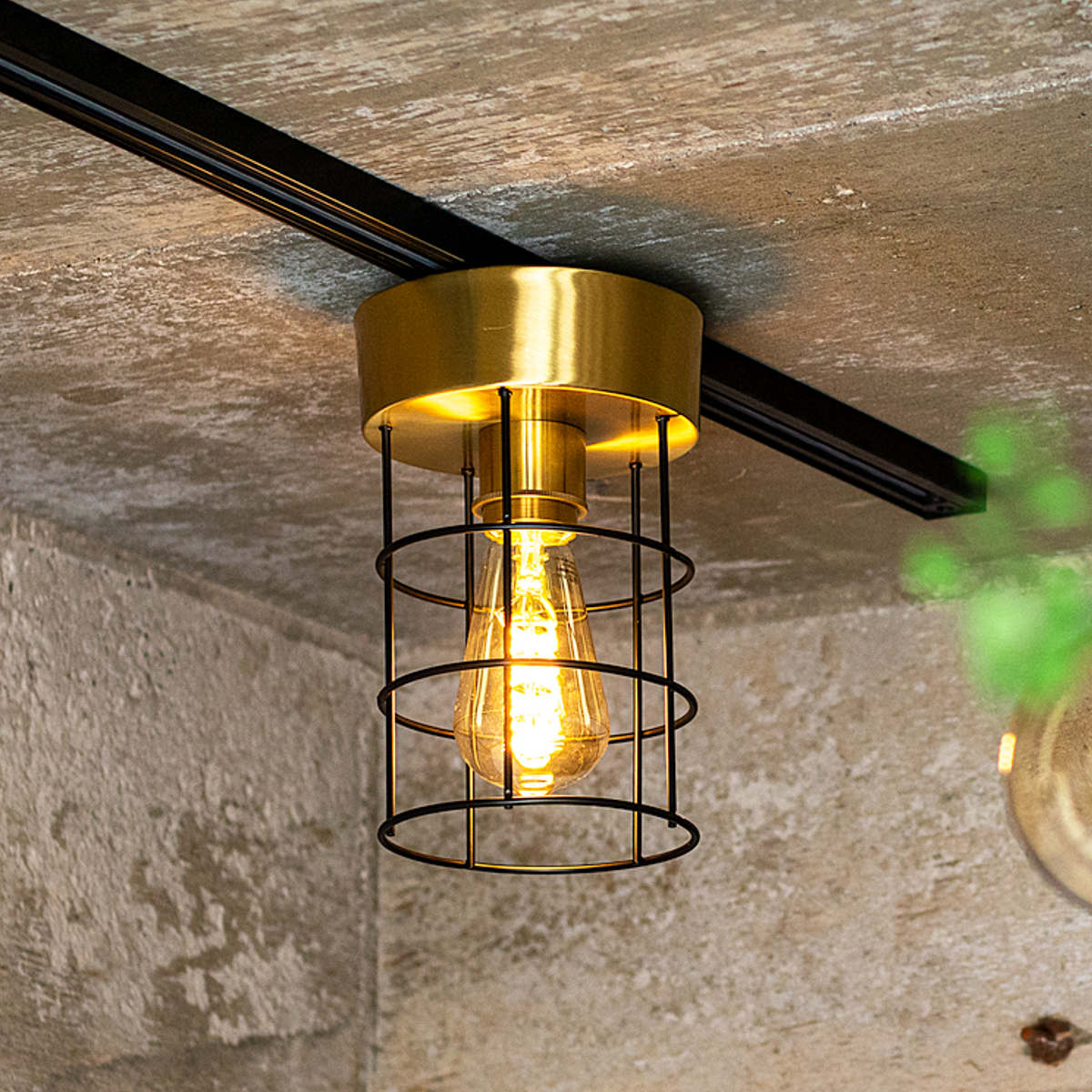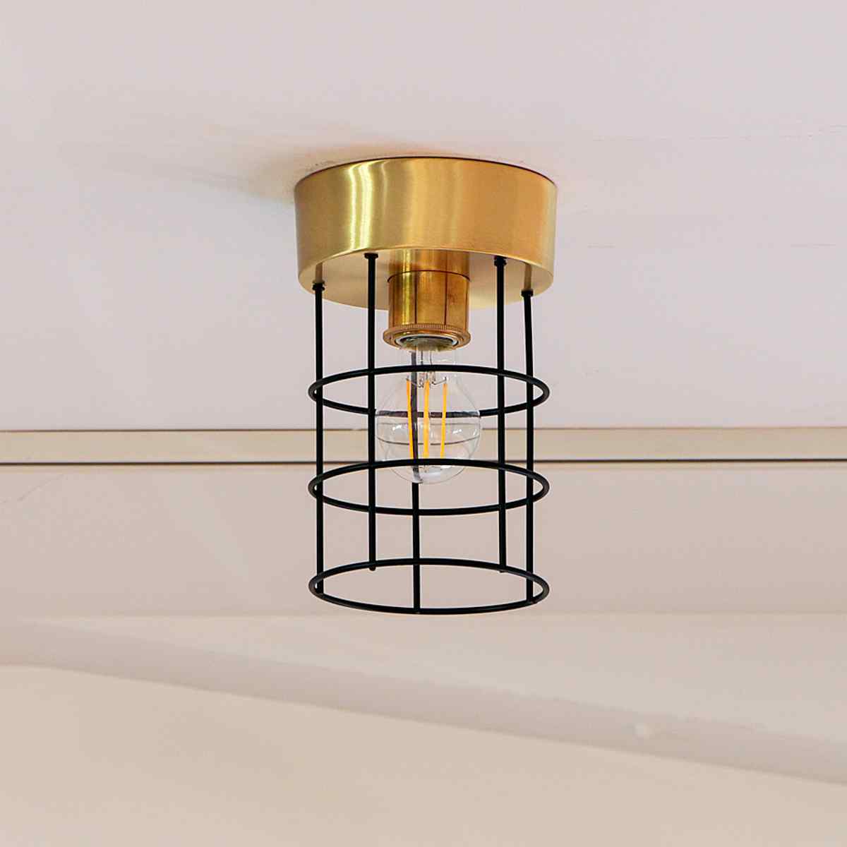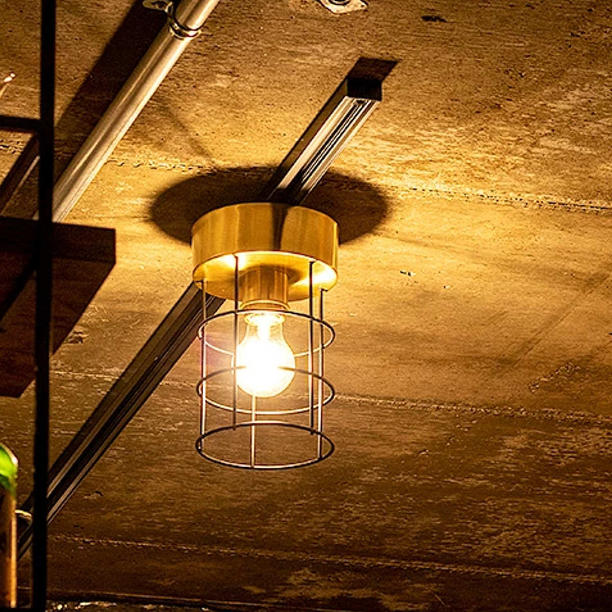 真鍮とアイアンを組み合わせた、無骨さの中に洗練を感じる1灯シーリングライト。ゴールドとブラックのコントラストが空間を引き締め、シンプルながらも存在感のあるデザインに仕上がっています。