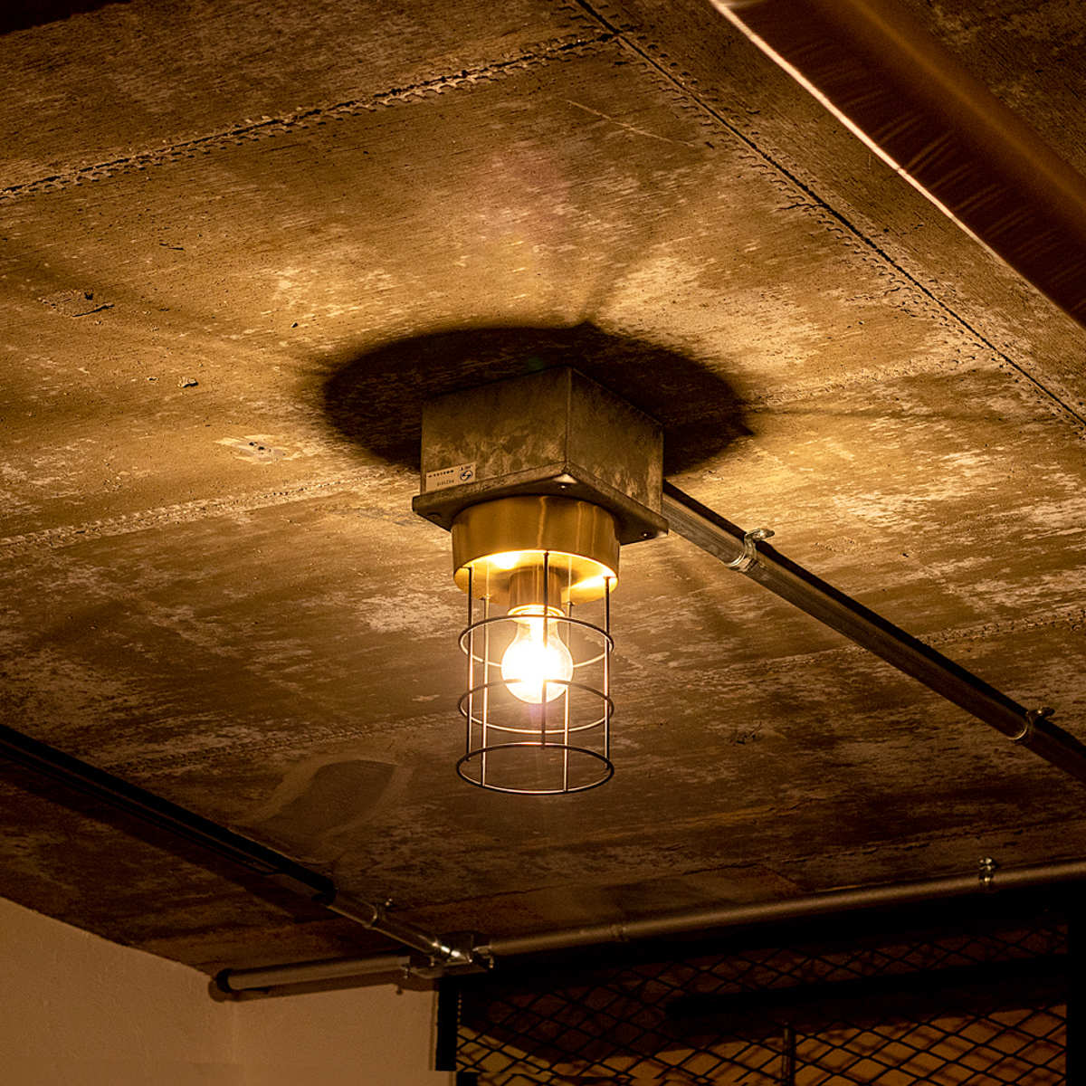点灯すると、アイアンフレームの隙間からこぼれる光が天井や壁に美しい陰影を演出。空間に奥行きと表情をプラスし、雰囲気のある空間づくりを叶えます。