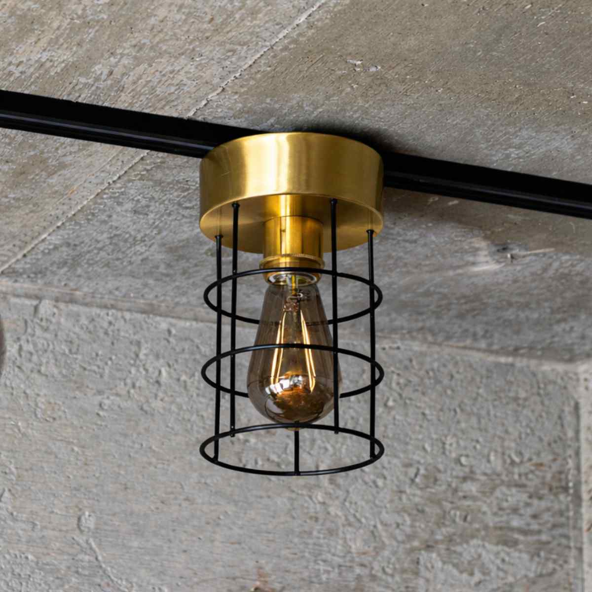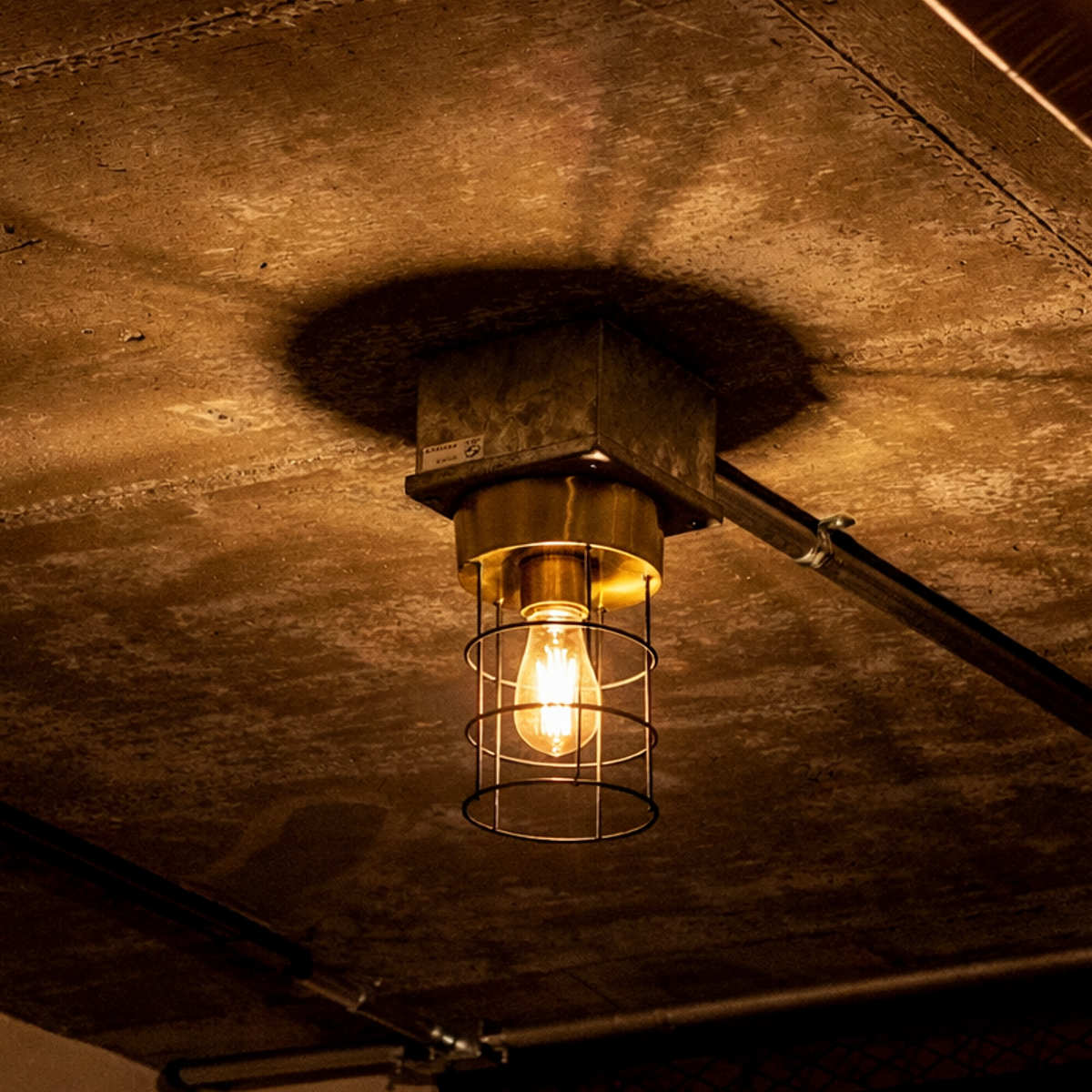 真鍮とアイアンを組み合わせた、無骨さの中に洗練を感じる1灯シーリングライト。ゴールドとブラックのコントラストが空間を引き締め、シンプルながらも存在感のあるデザインに仕上がっています。
