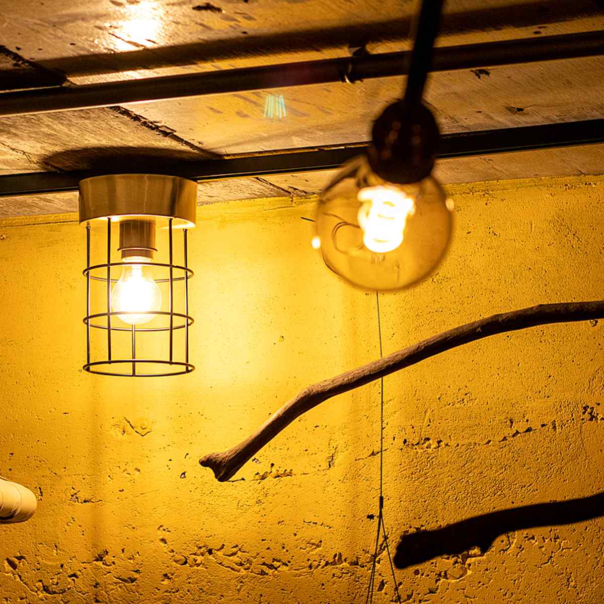 フィラメントの光をやさしく楽しめる、眩しさを抑えた落ち着いた明るさが特長。バーやレストランのような雰囲気づくりにもぴったりです。お好みのインテリアに合わせて、理想の空間演出をお楽しみいただけます。