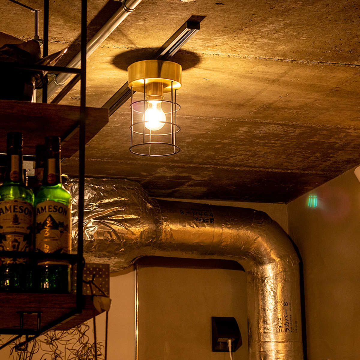 点灯すると、アイアンフレームの隙間からこぼれる光が天井や壁に美しい陰影を演出。空間に奥行きと表情をプラスし、雰囲気のある空間づくりを叶えます。
