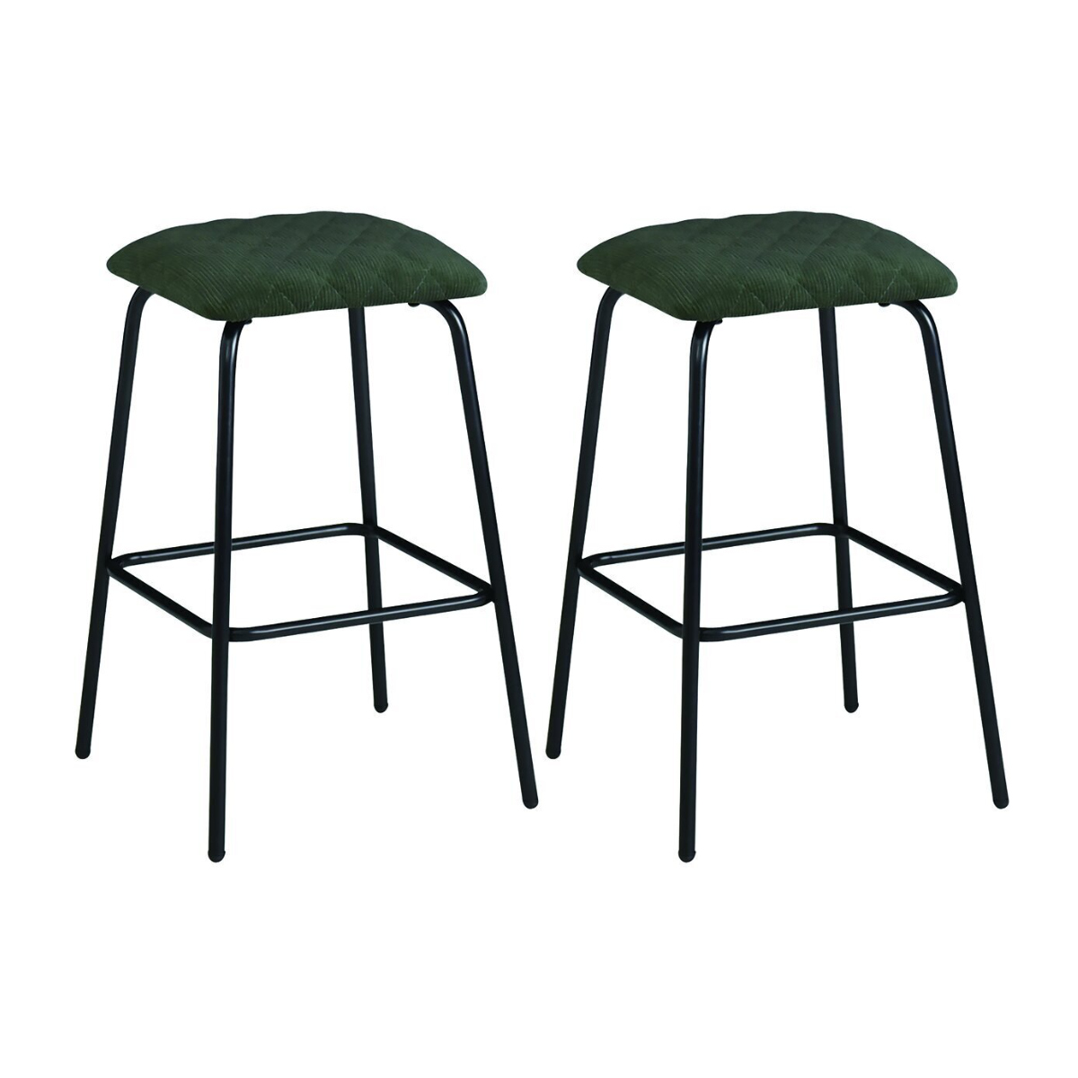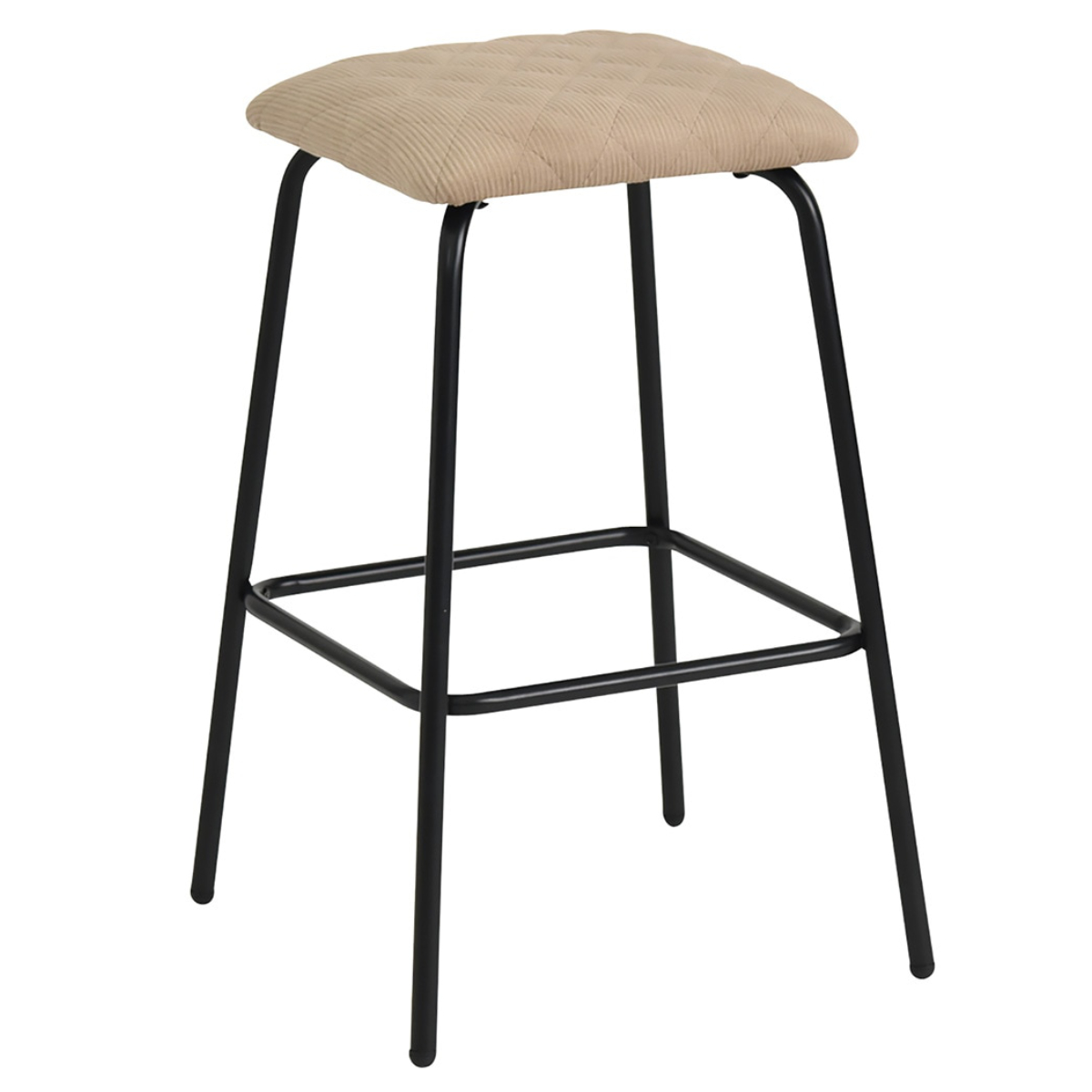 スチール脚とファブリック座面を組み合わせた、カジュアルで取り入れやすいデザインのカウンターチェアです。座面高63cmでカウンターやハイテーブルにちょうどよく、同色2脚セットで空間に統一感がうまれます。