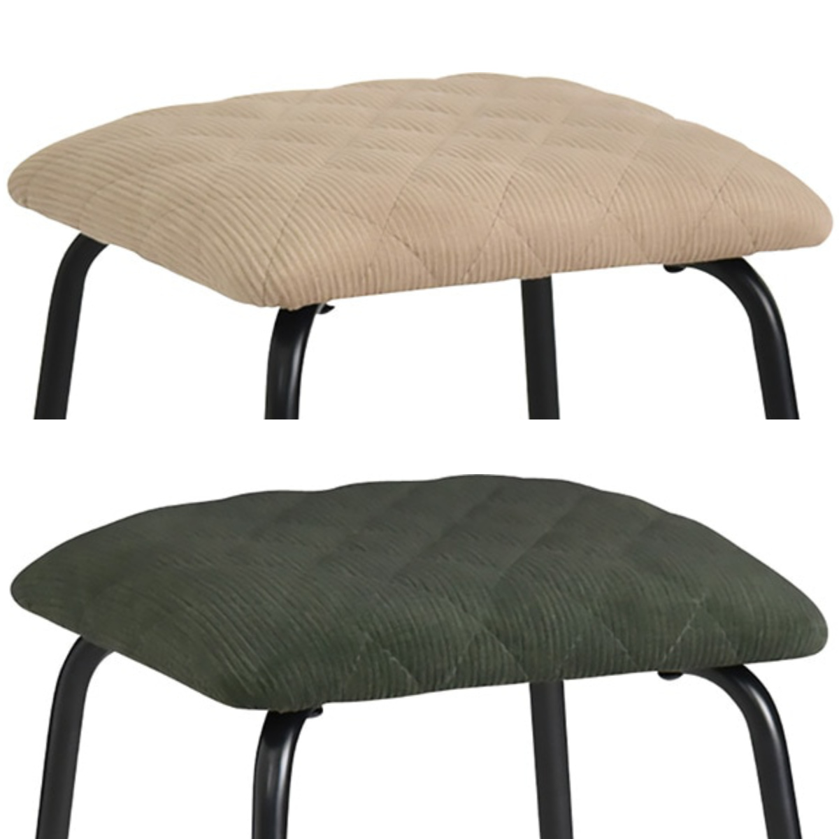 座面は、明るく落ち着いた色合いのベージュと、深みのある上品なグリーンの2色展開です。アイアン脚との組み合わせで、ほどよくカジュアルな印象に。
