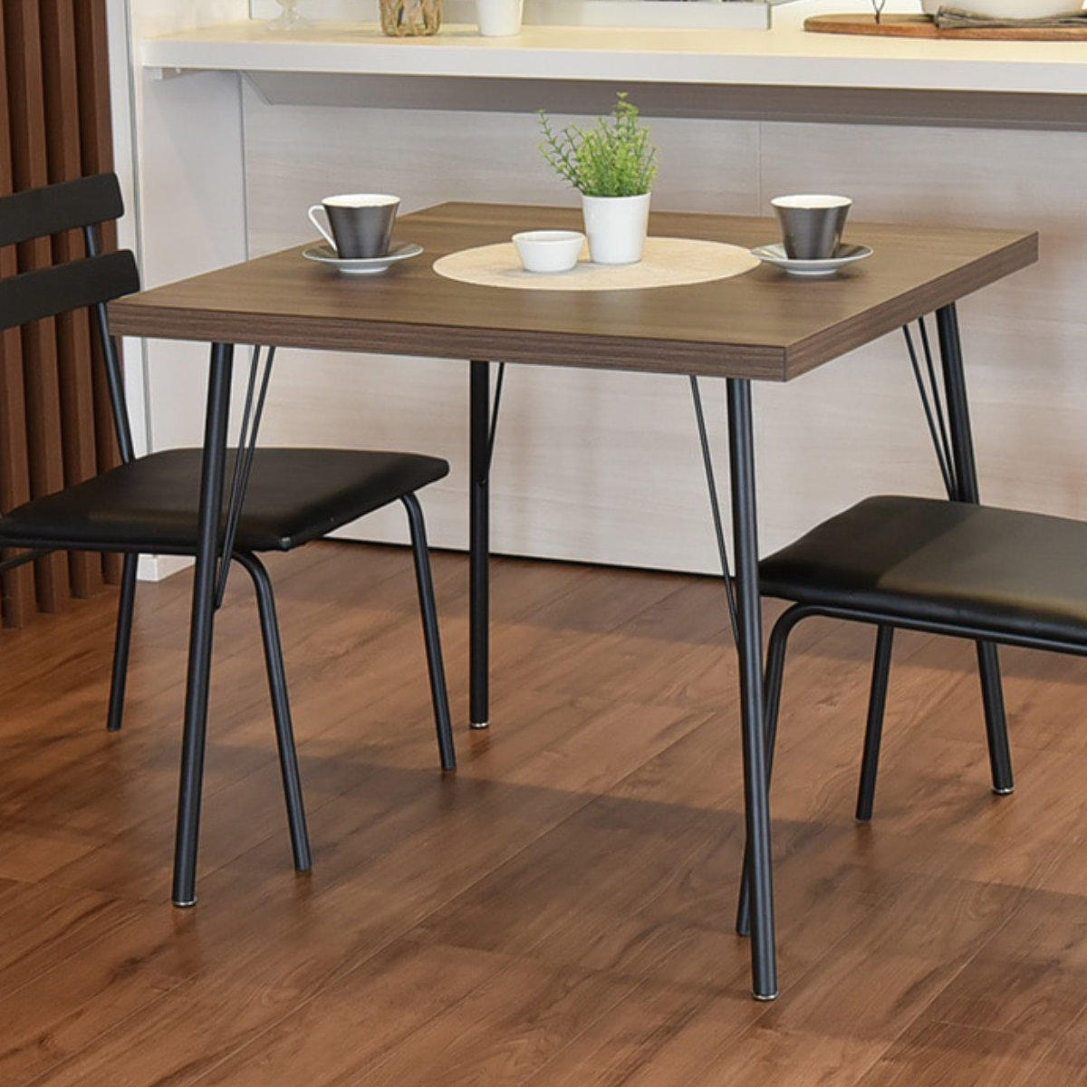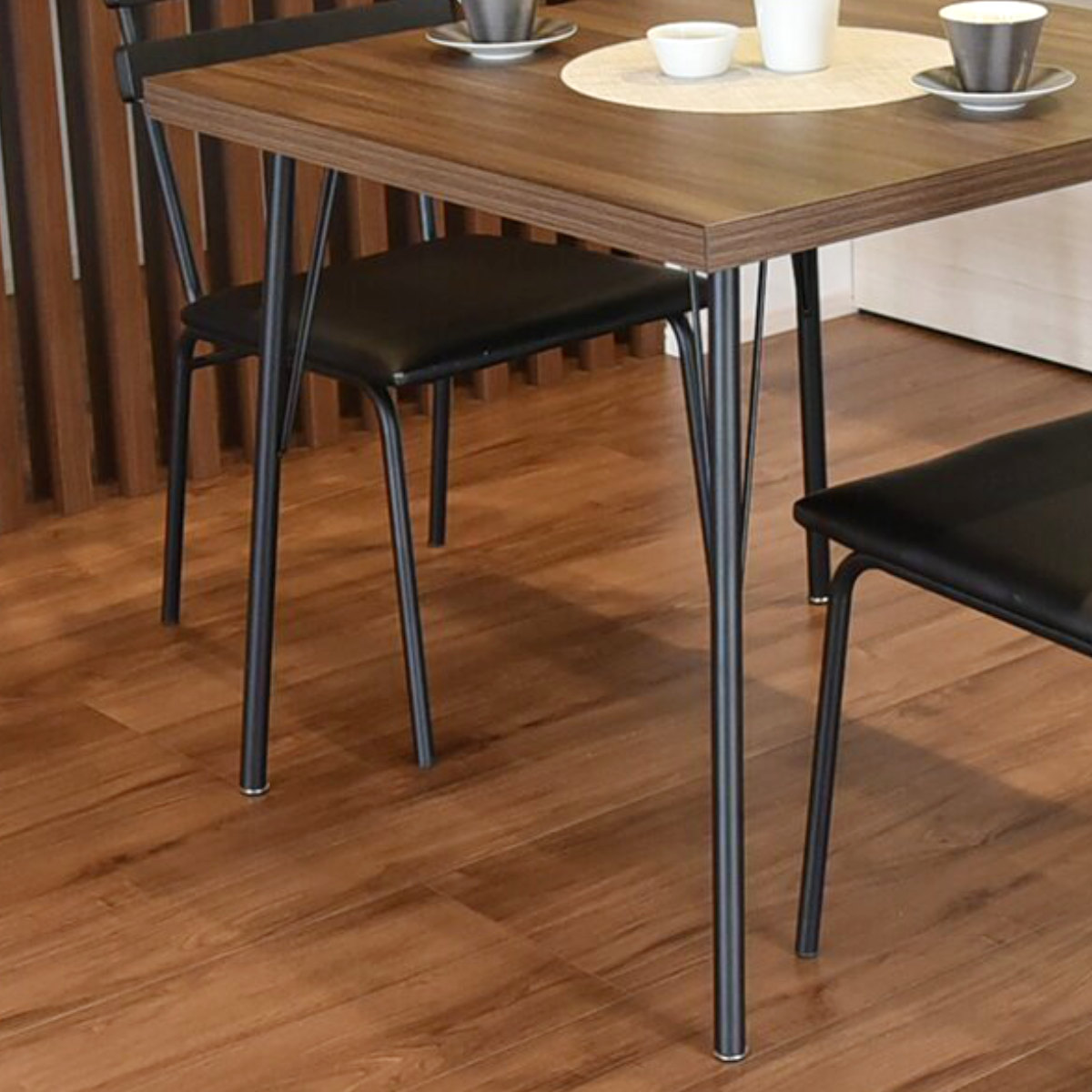 細身のスチール脚を採用した軽やかなデザイン。足元に圧迫感が出にくく、お部屋をすっきりとした印象に見せてくれます。安定感のある構造で、食事や作業の際も安心して使用できます。