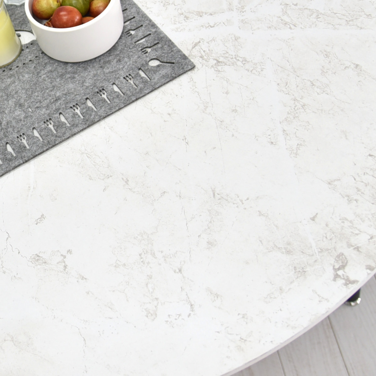 高級感のある大理石調デザインの天板が、ダイニング空間をカジュアルモダンな雰囲気に演出します。シンプルなインテリアにもアクセントを加え、置くだけで洗練された空間づくりを楽しめます。