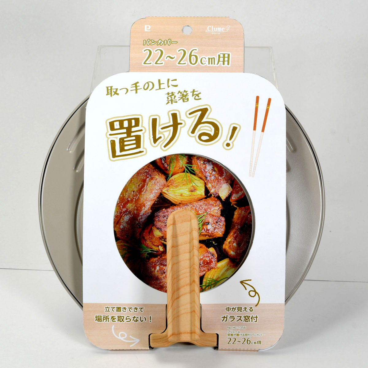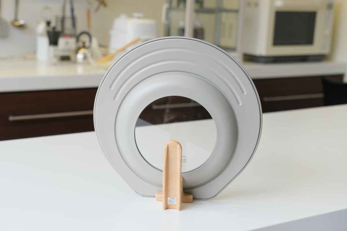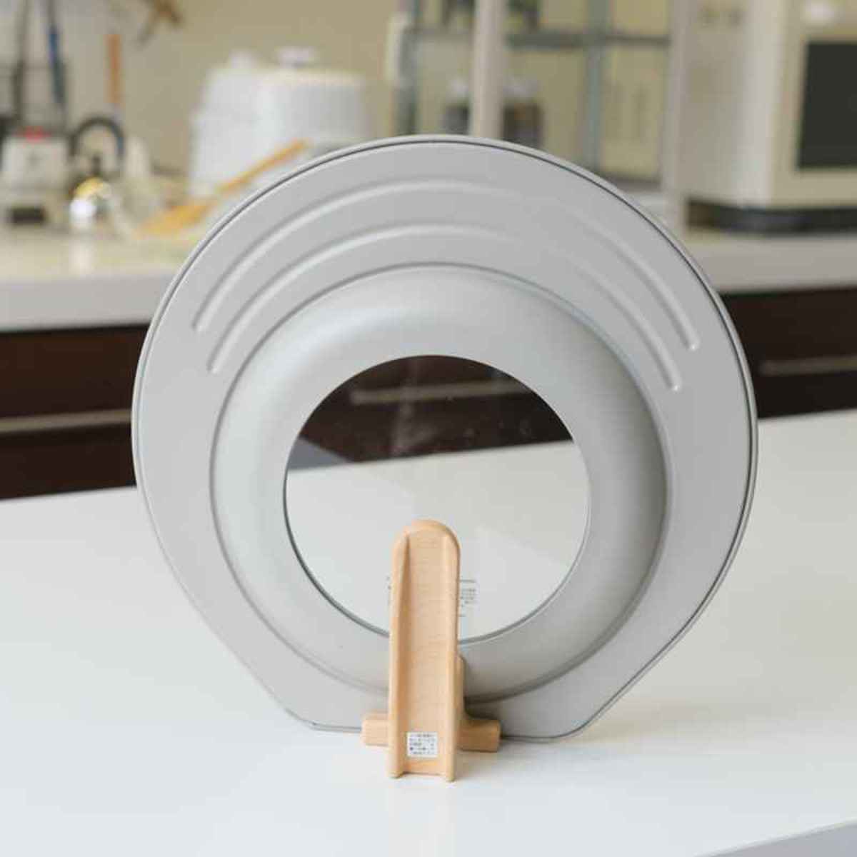 場所を取らず、サッと立てられるスタンド式のパンカバーです。調理中に置き場所に困る菜箸をハンドルのくぼみに置けるので、作業がスムーズに進みます。