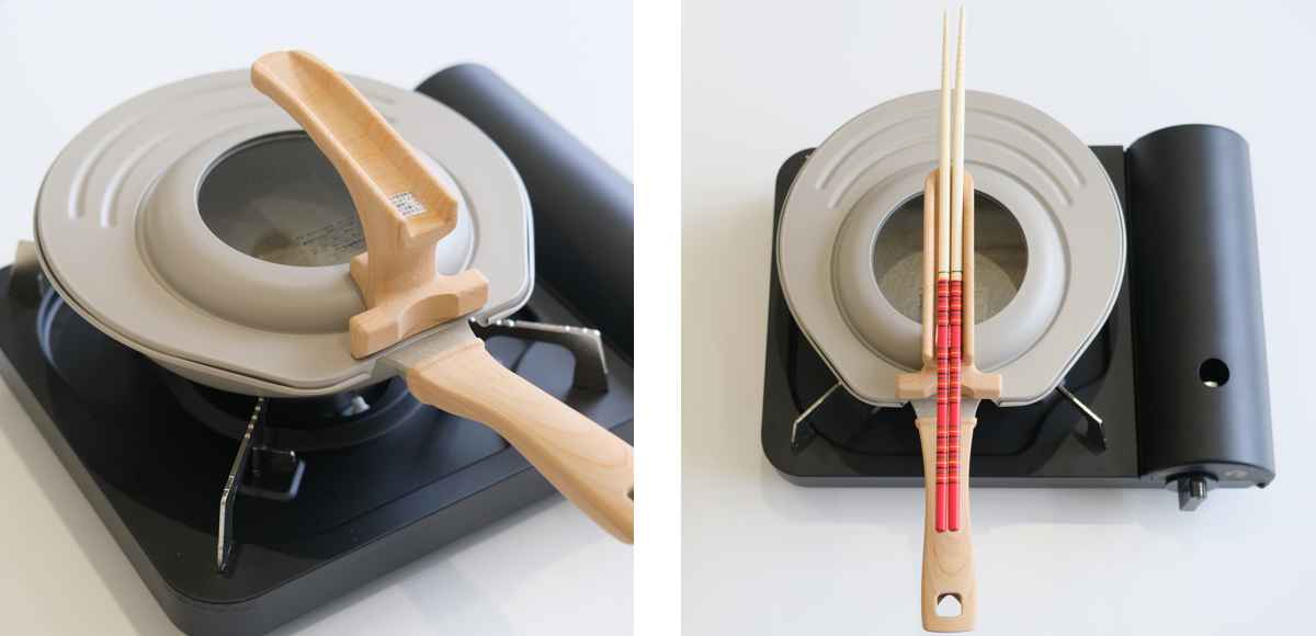 ●菜箸をハンドル部分に置ける設計で、調理中も置き場所に困りません。