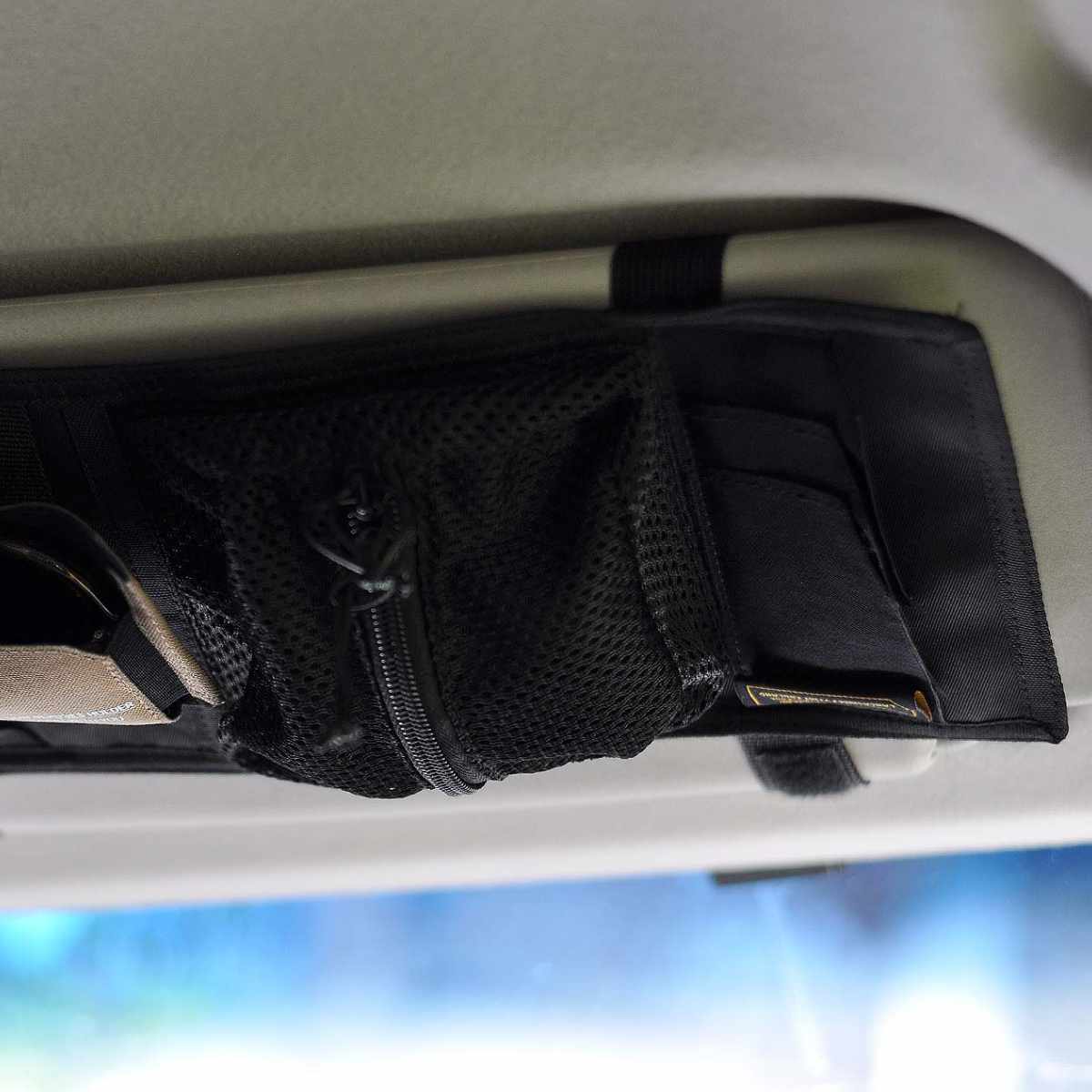 サンバイザーに取り付けるだけで車内の小物をまとめて収納できるオーガナイザーです。散らかりがちな車内をスマートに整理し、快適なドライブ空間を作ります。