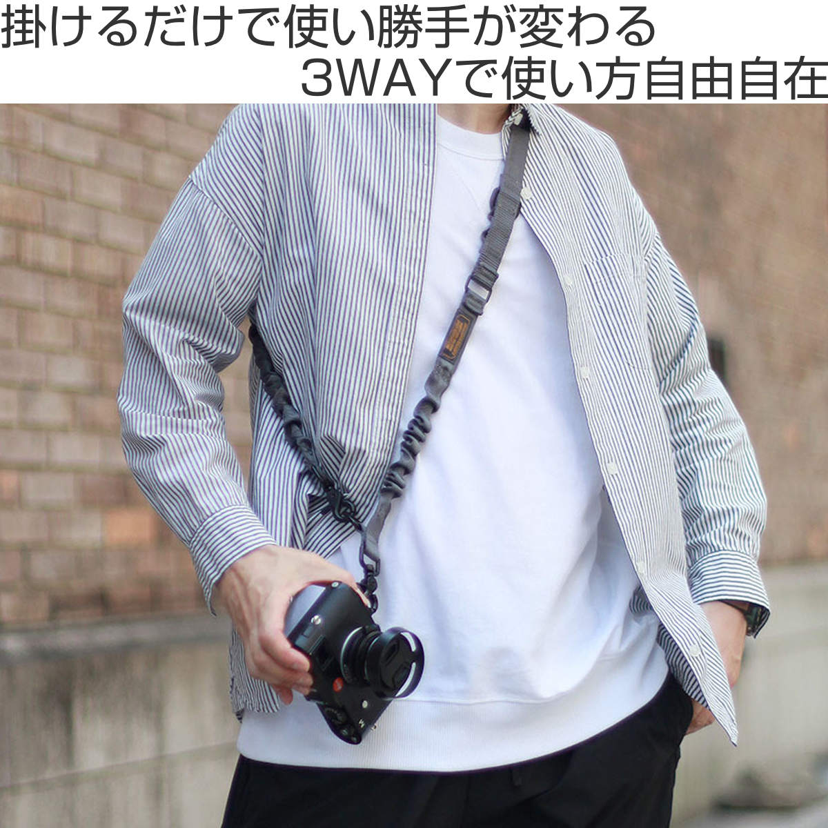 スマートフォンやカメラを吊り下げられる、3WAYショルダーストラップです。軽量で丈夫、伸縮性も備えた設計で、スマートフォンもカメラも快適に携帯できます。