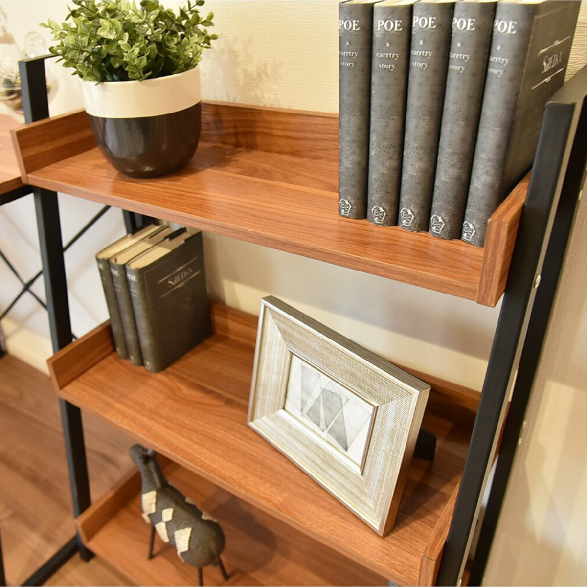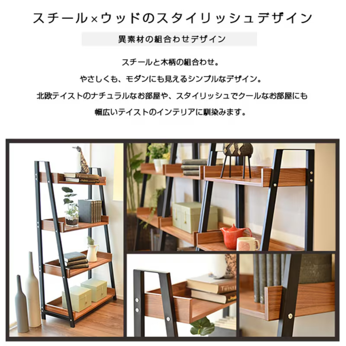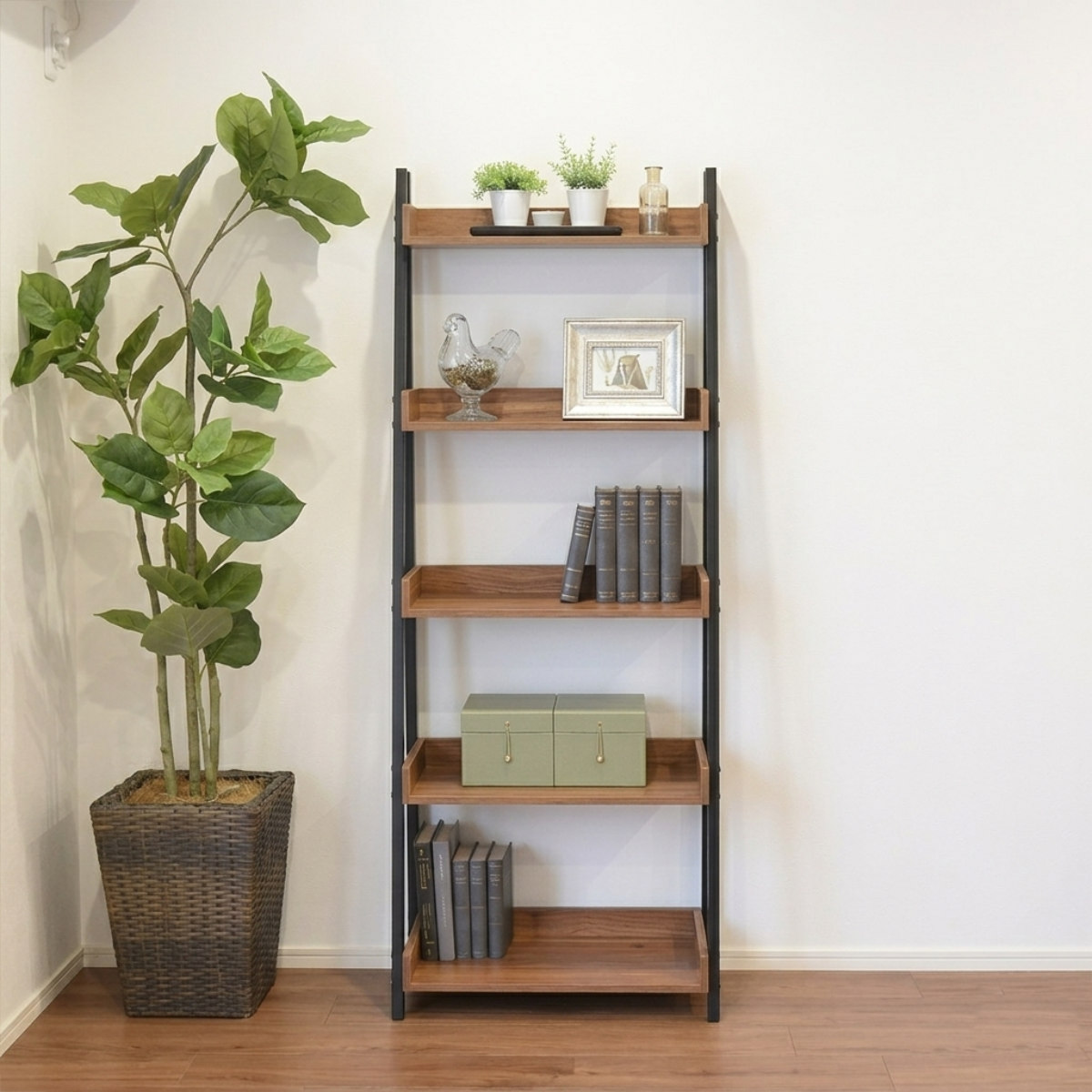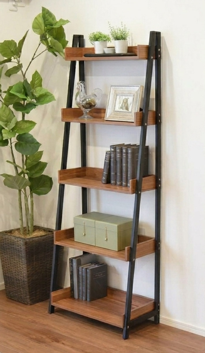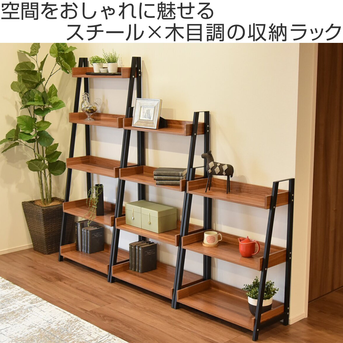 魅せる収納で空間をもっと美しく スチール×木目調の5段シェルフ