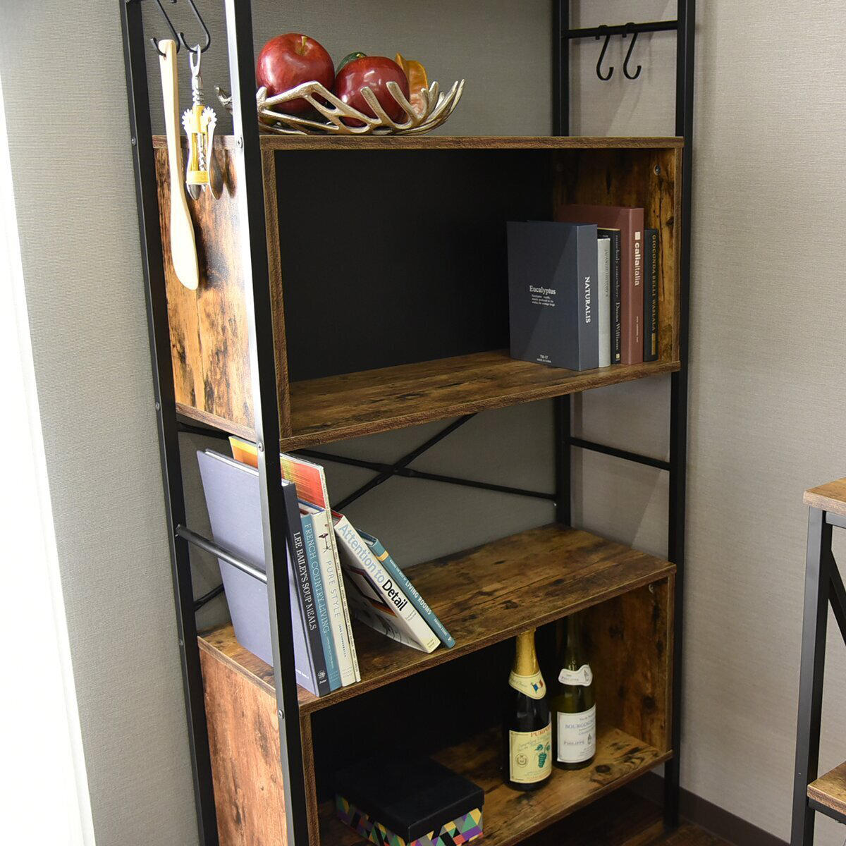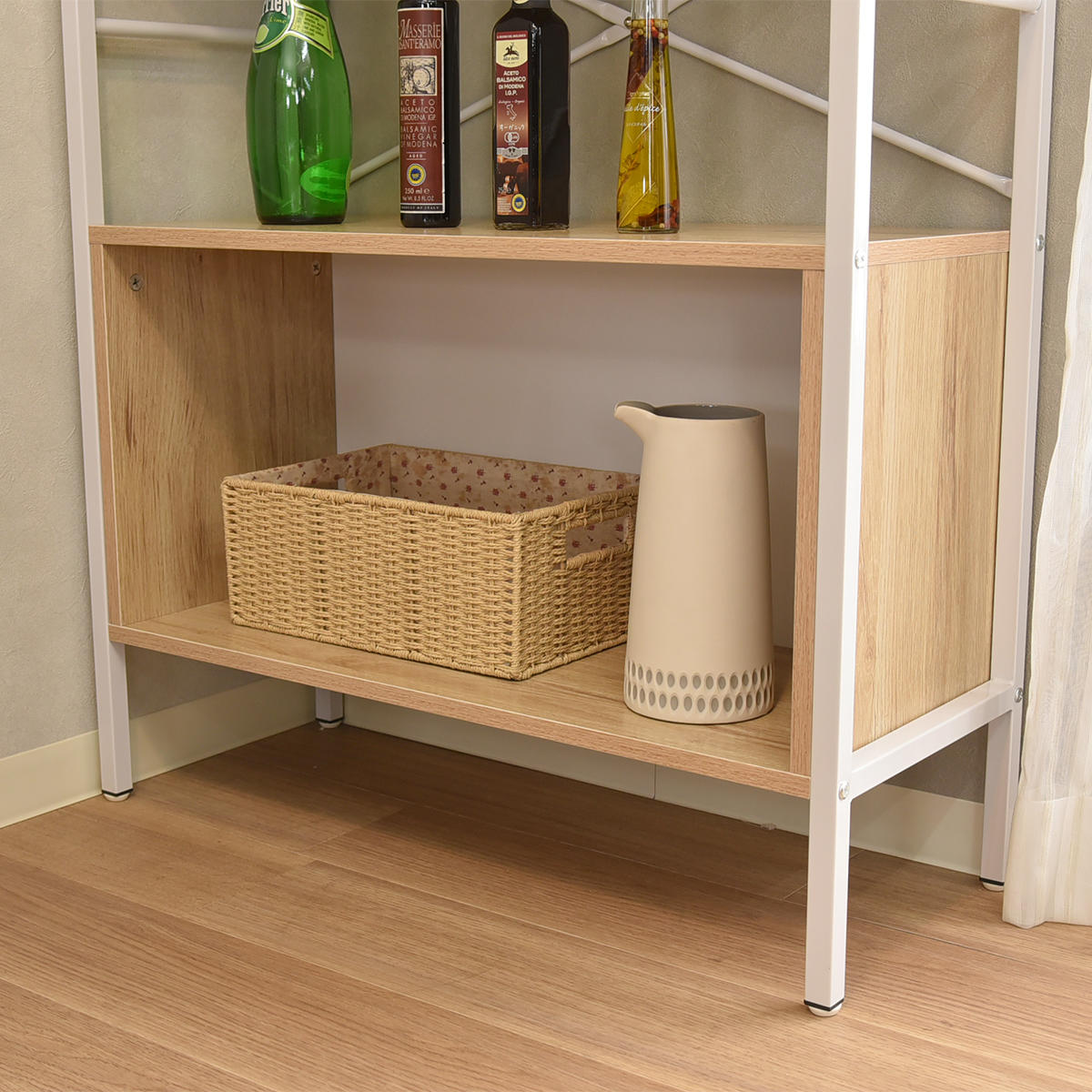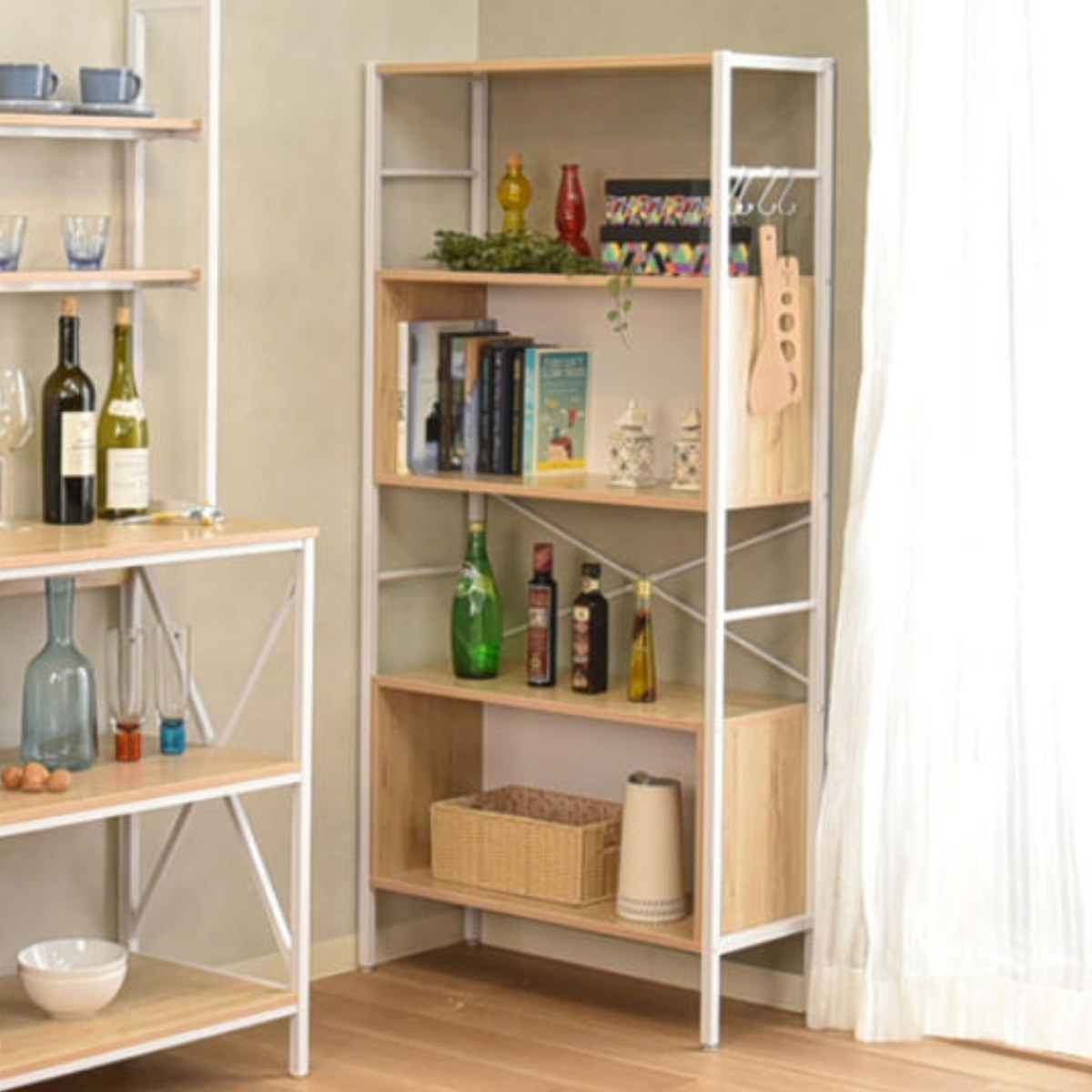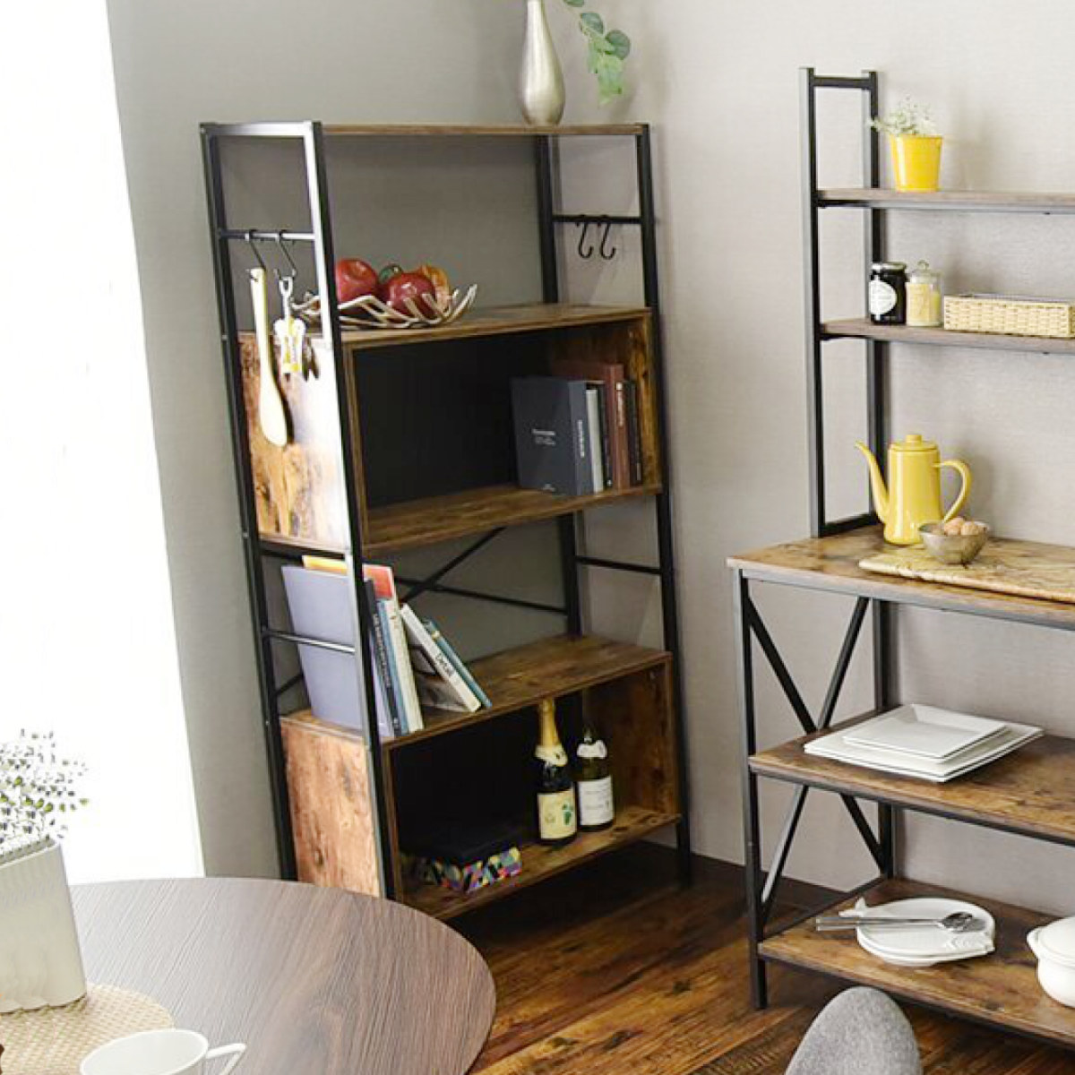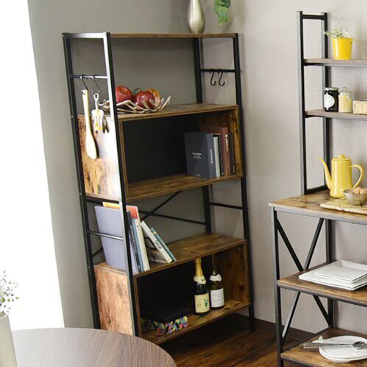 スチールと木目調天板を組み合わせた、シンプルで存在感のあるフリーラックです。置くだけでカフェのような雰囲気になり、見せる収納としてインテリアを楽しみたい方にぴったりです。