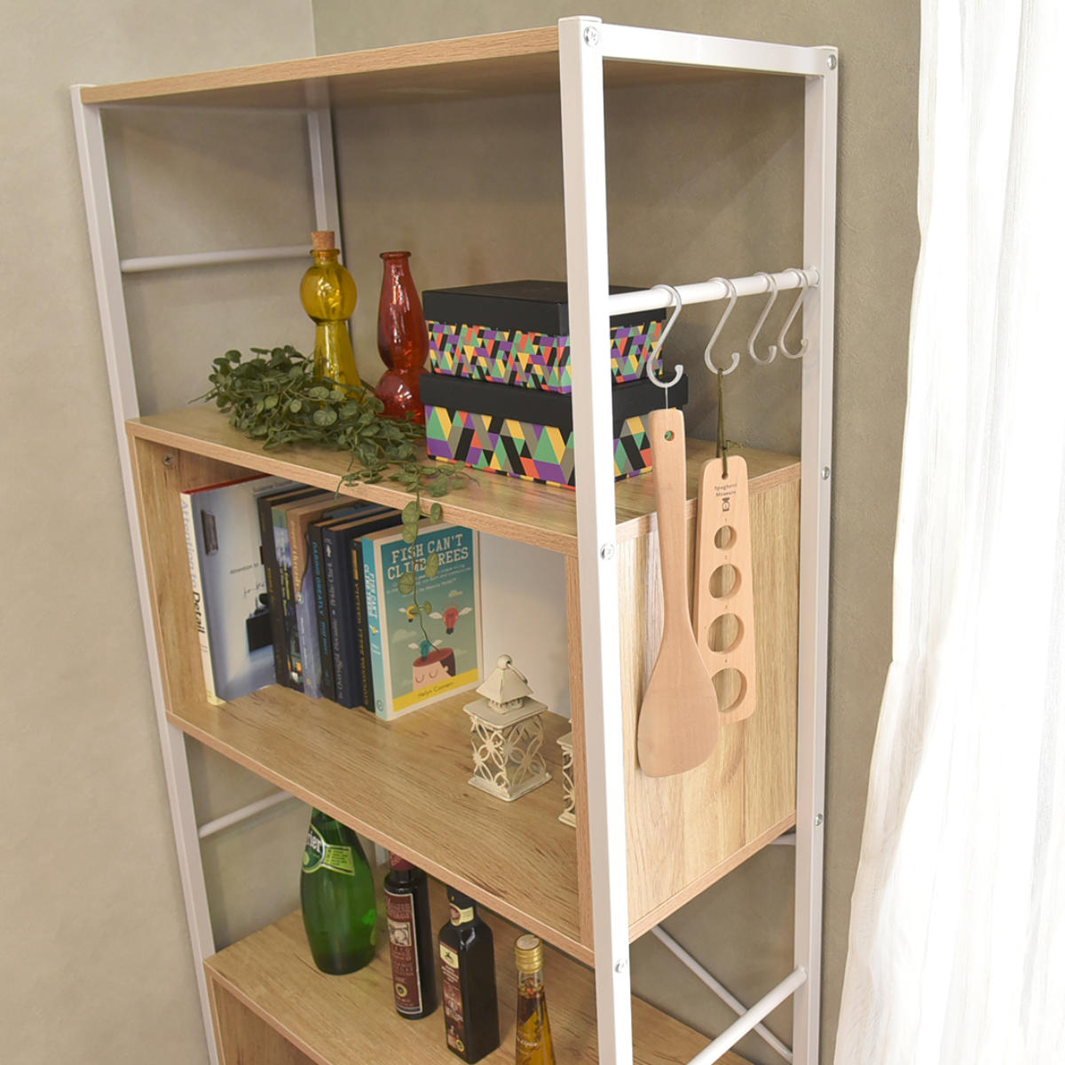 側面にはフック付きで、キッチンツールやバッグなどを掛けて便利に使えます。