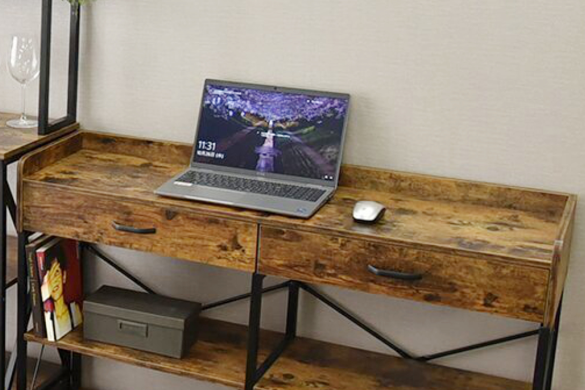 天板は幅120cmと奥行35cmで、ノートパソコンや作業道具を置いても余裕があります。