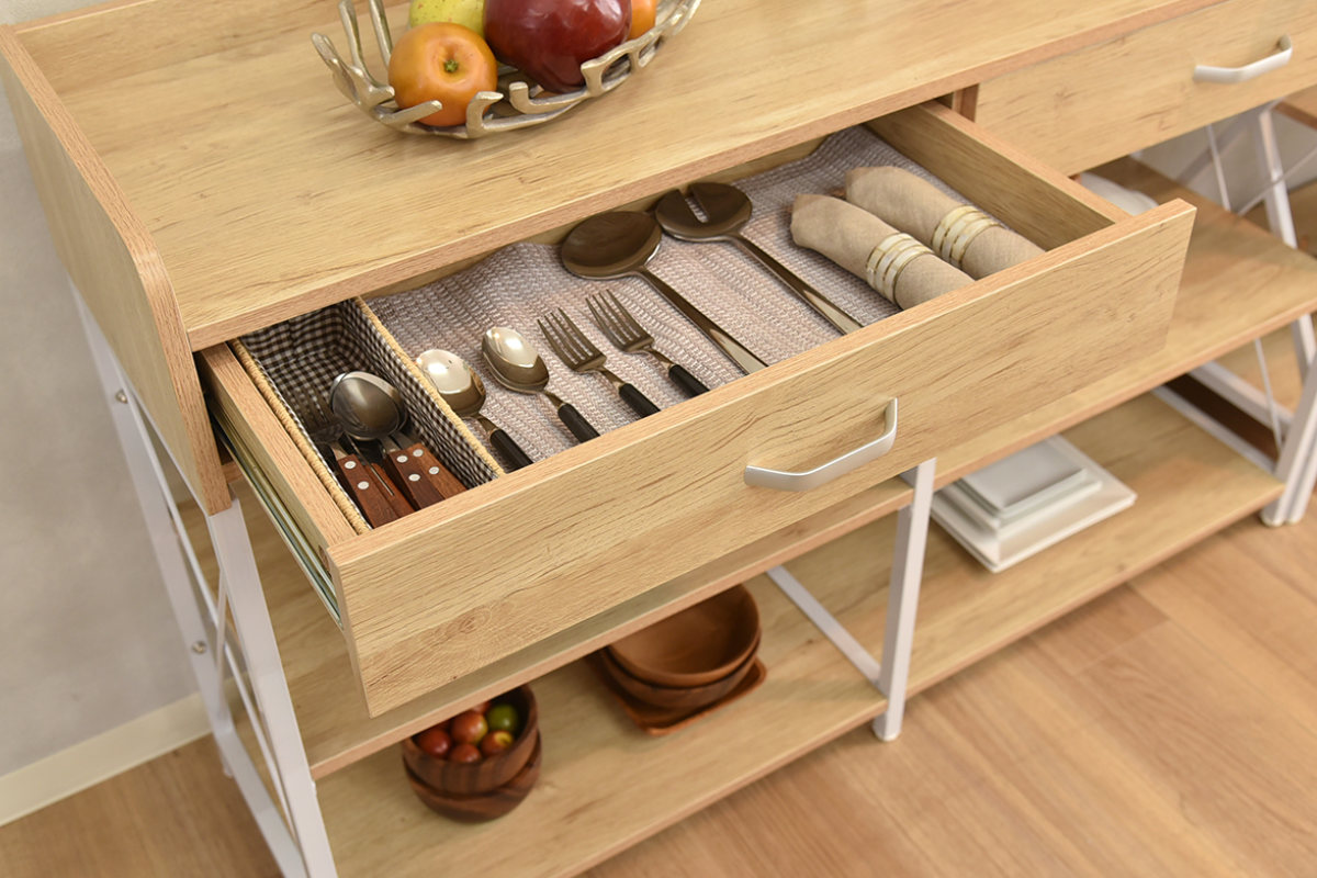 引き出しは2杯あり、カトラリーやナフキンなどを整理して収納できます。