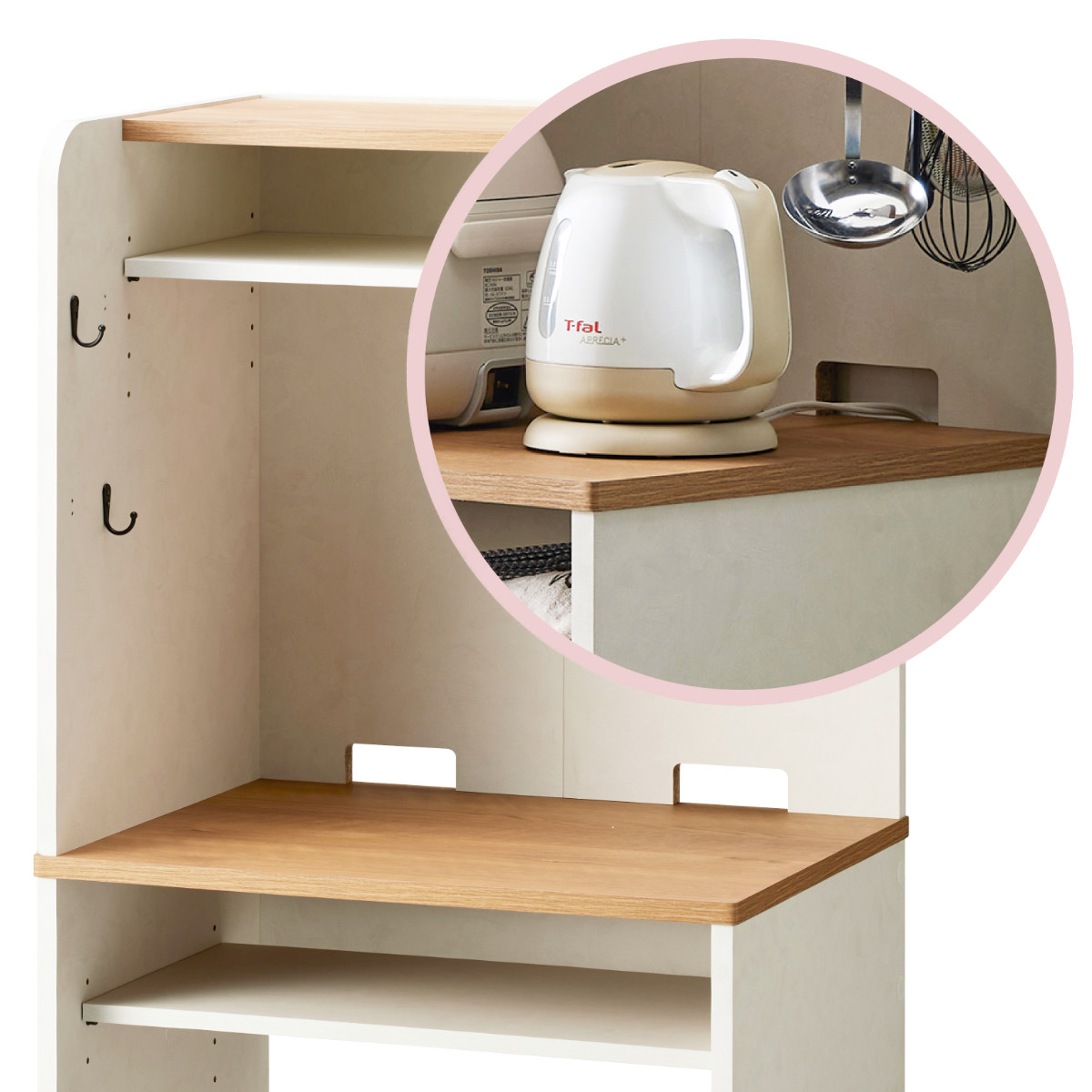 背面にはコードを通せる切り欠き付き。家電を置いても配線がごちゃつかず、見た目もすっきり保てます。