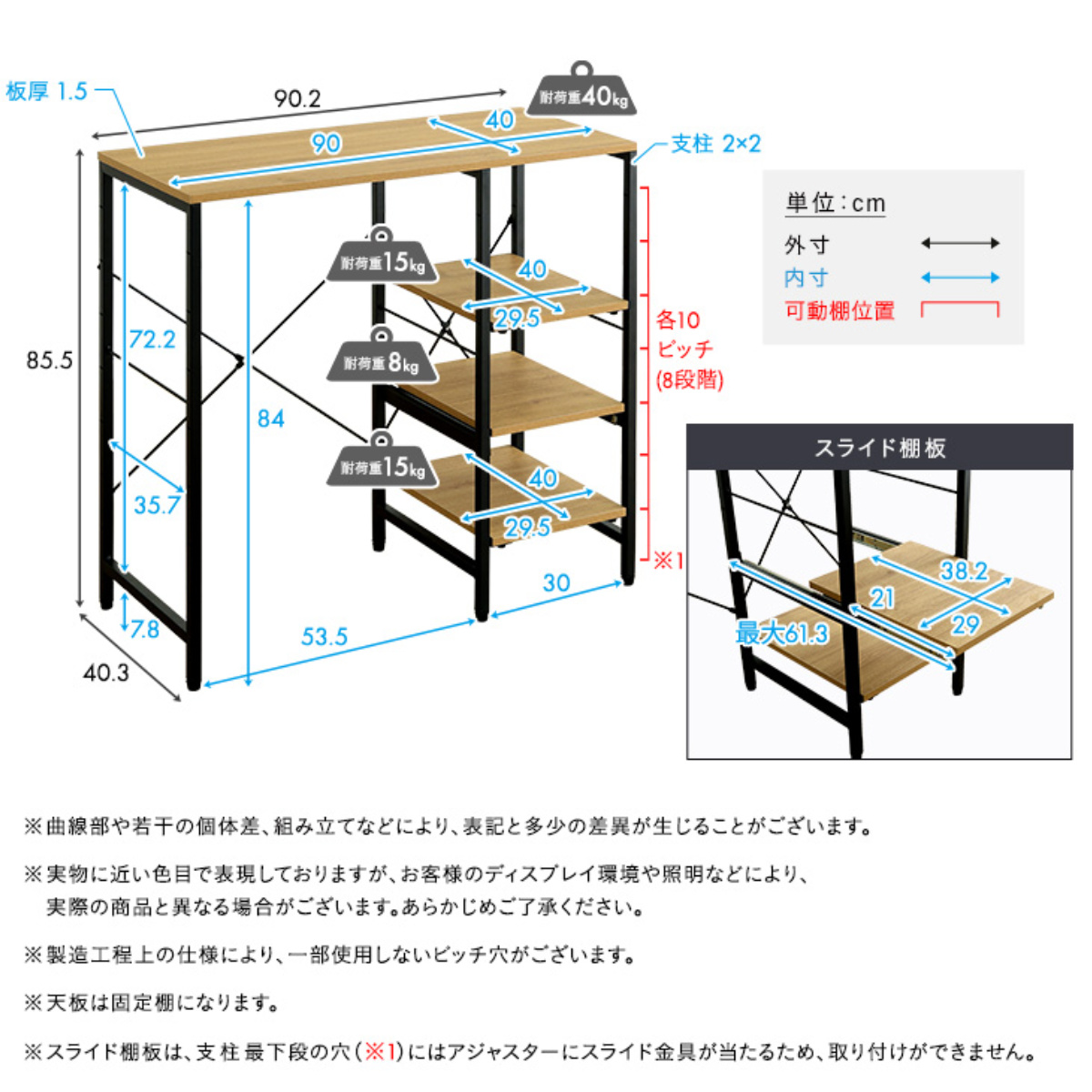 | 天板耐荷重 | 40kg |