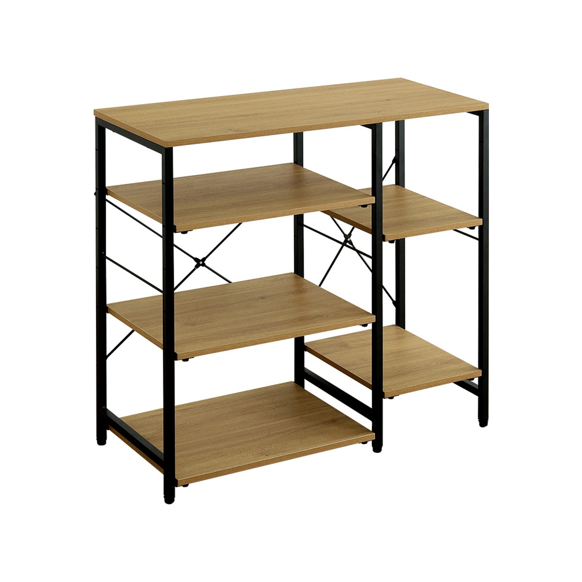 可動棚は、専用パーツでしっかりと固定できるため棚がずれ落ちる心配がなく安心です。筋交いとアジャスターにより、床のガタつきや製品の歪みを抑えます。