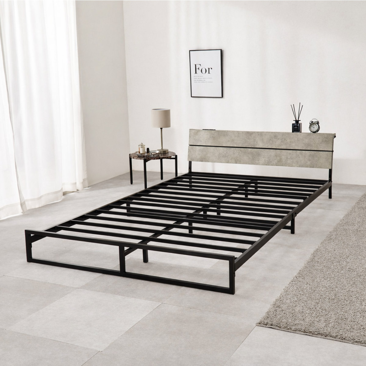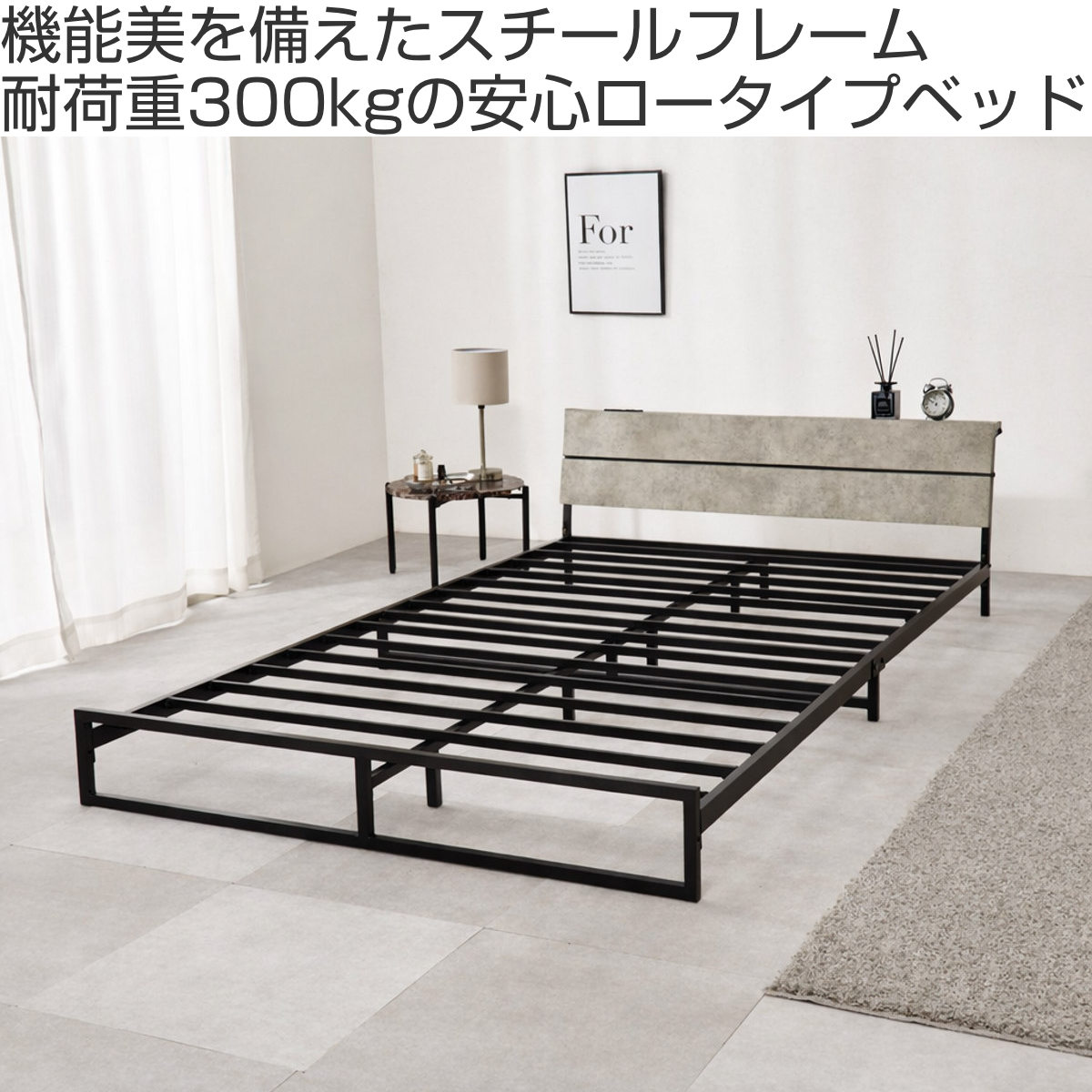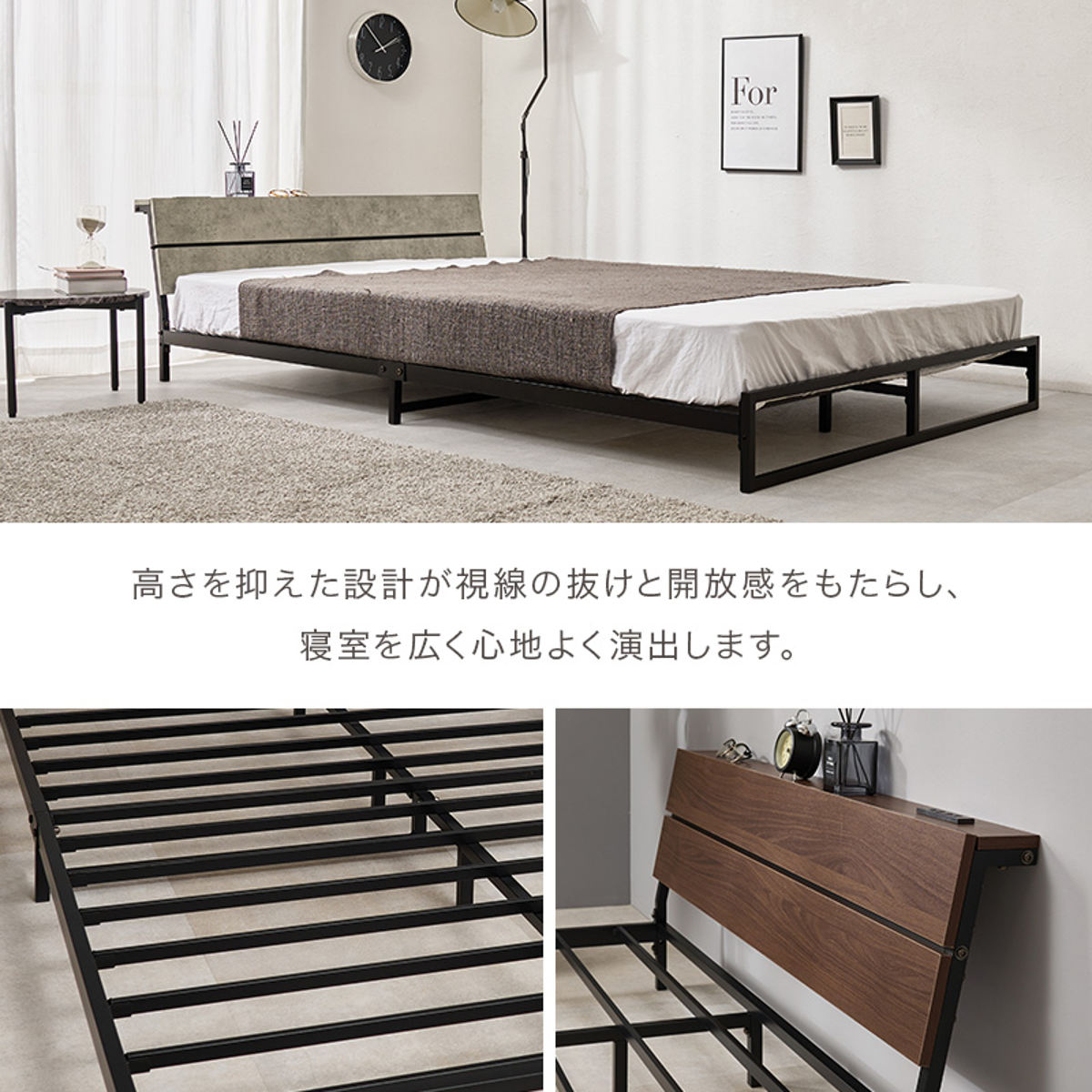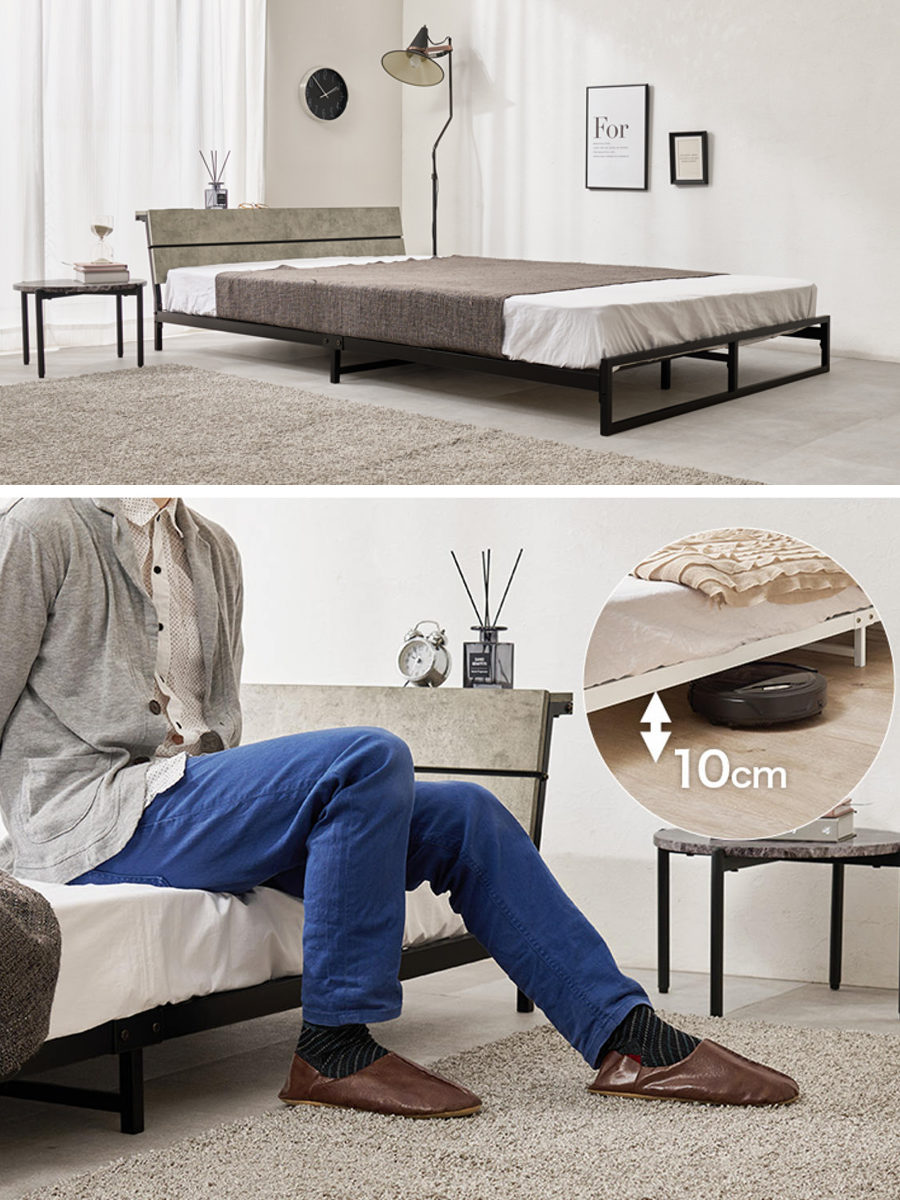 無骨で美しいスチールフレームのロータイプベッドです。見た目もすっきり、無駄のない洗練されたデザインがお部屋を広く見せ、インテリアに自然に馴染みます。