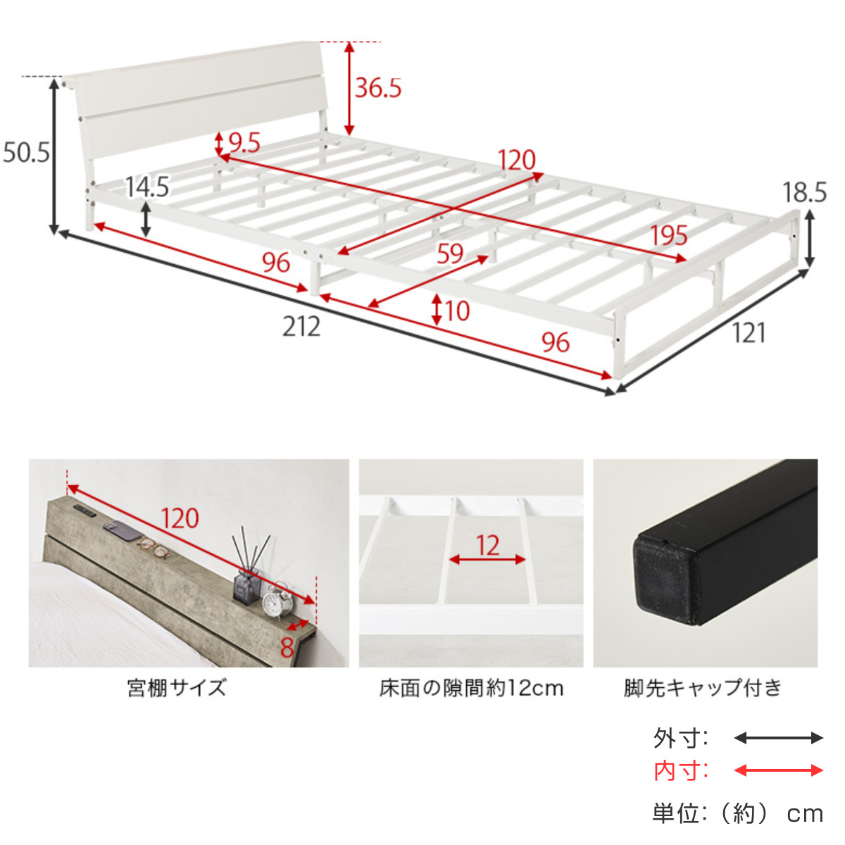 - 約幅121×奥行212×高さ50.5cm