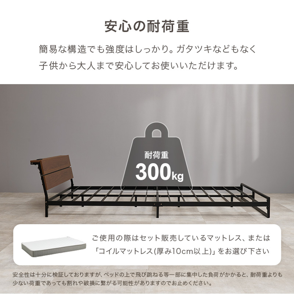 耐荷重300kgのタフ設計でしっかり支える