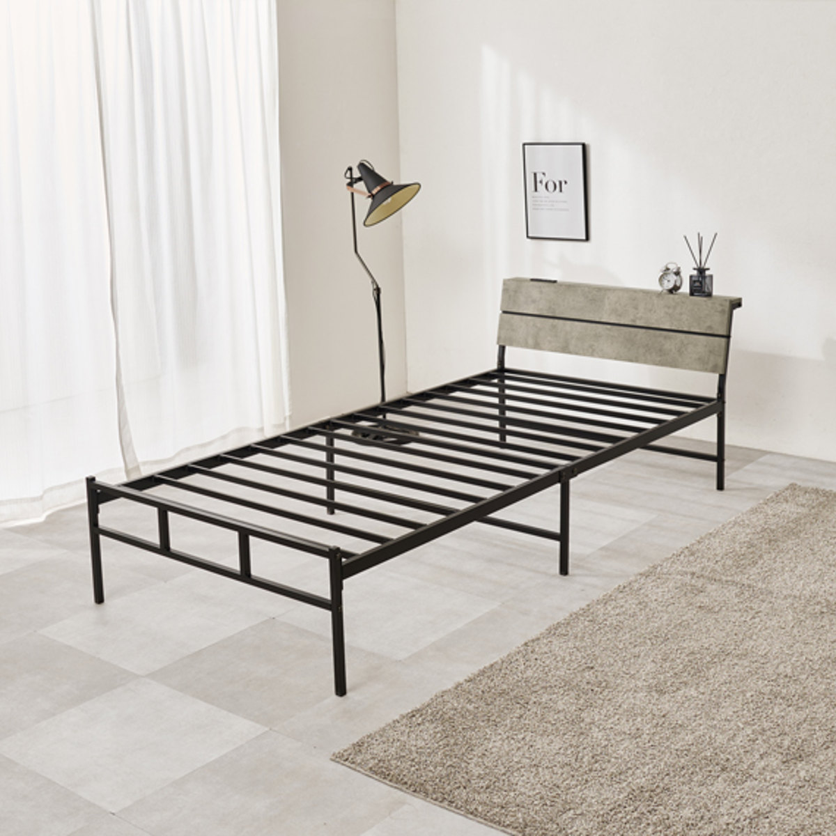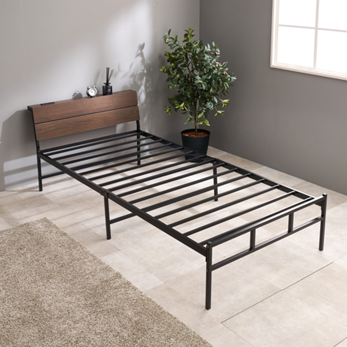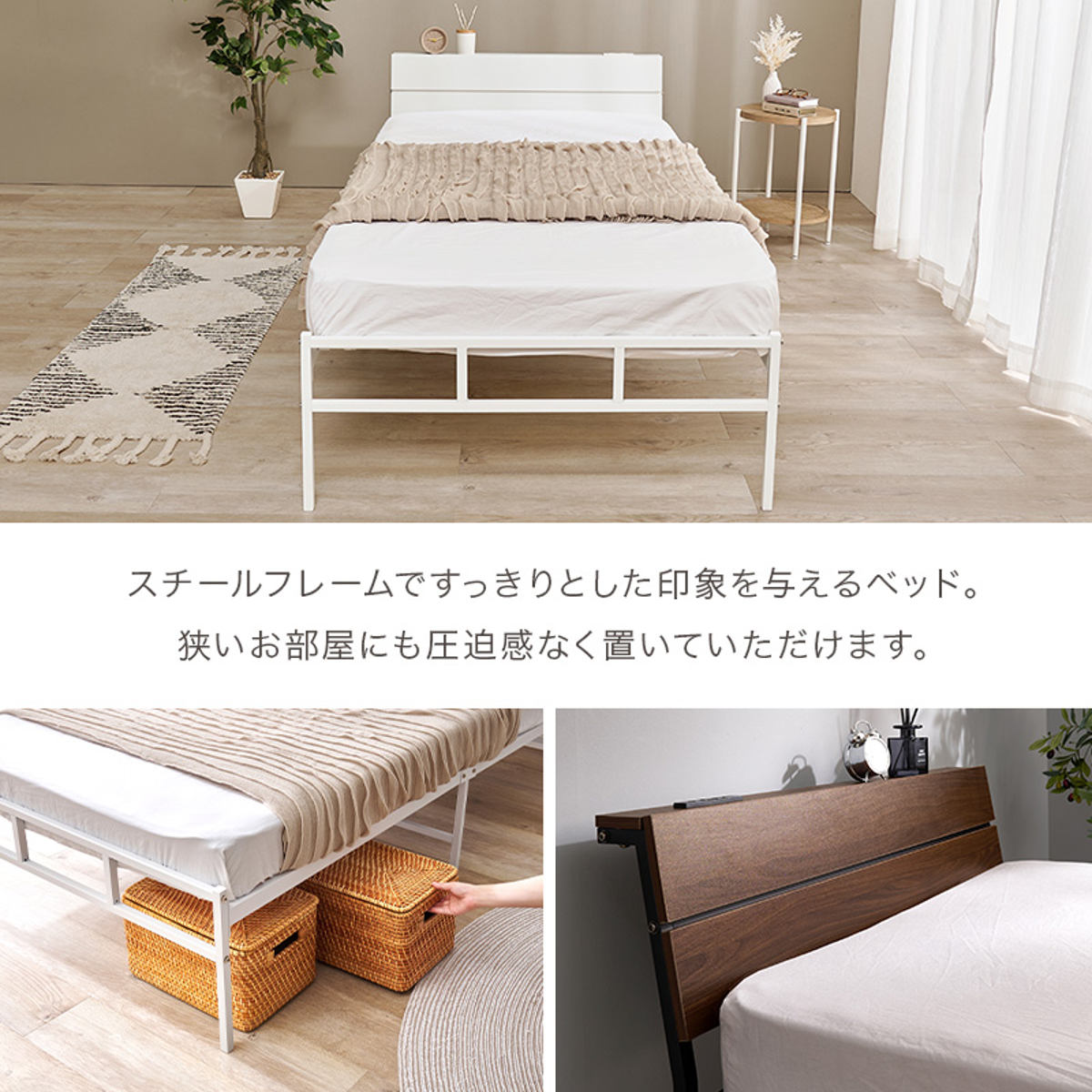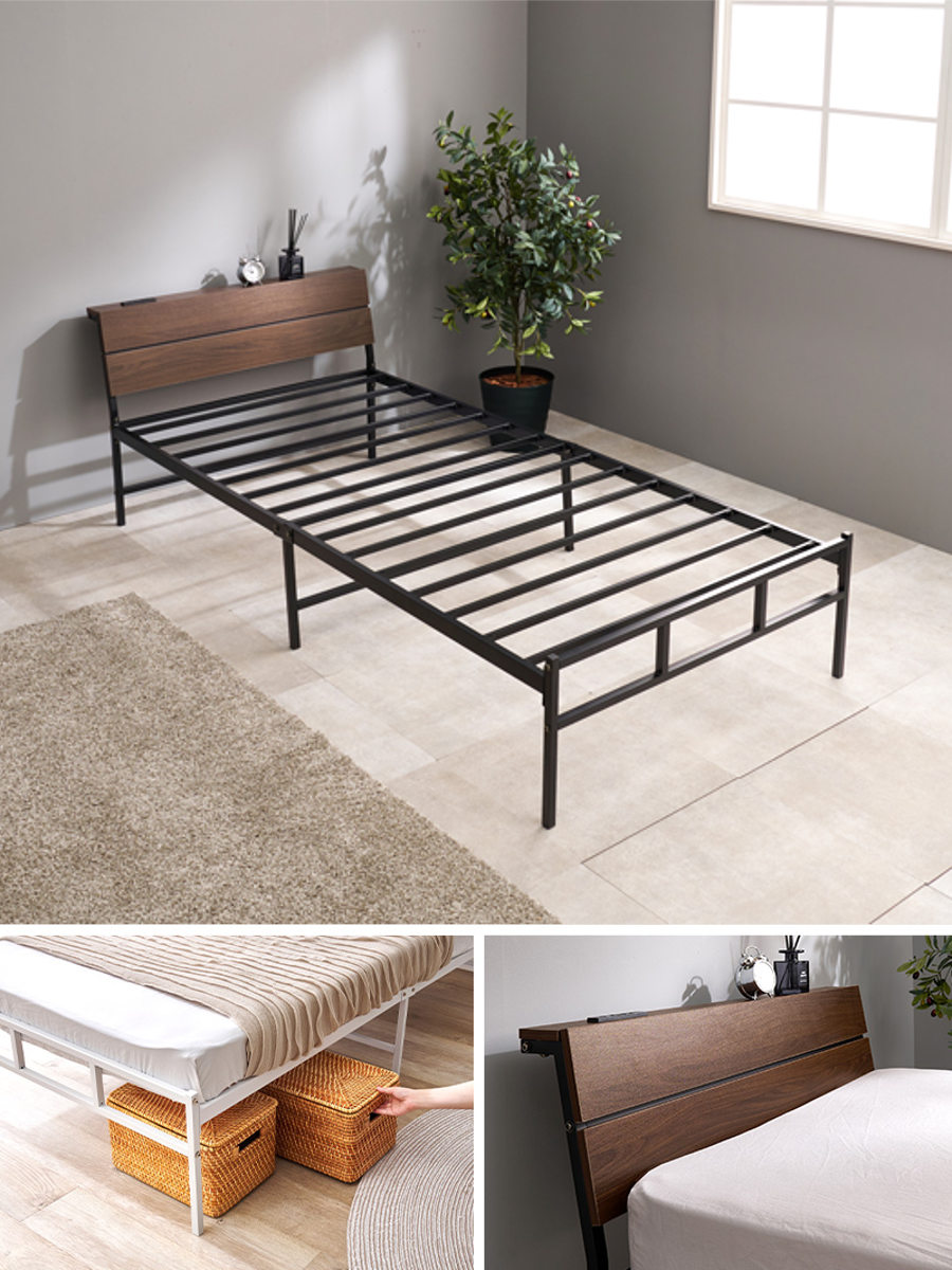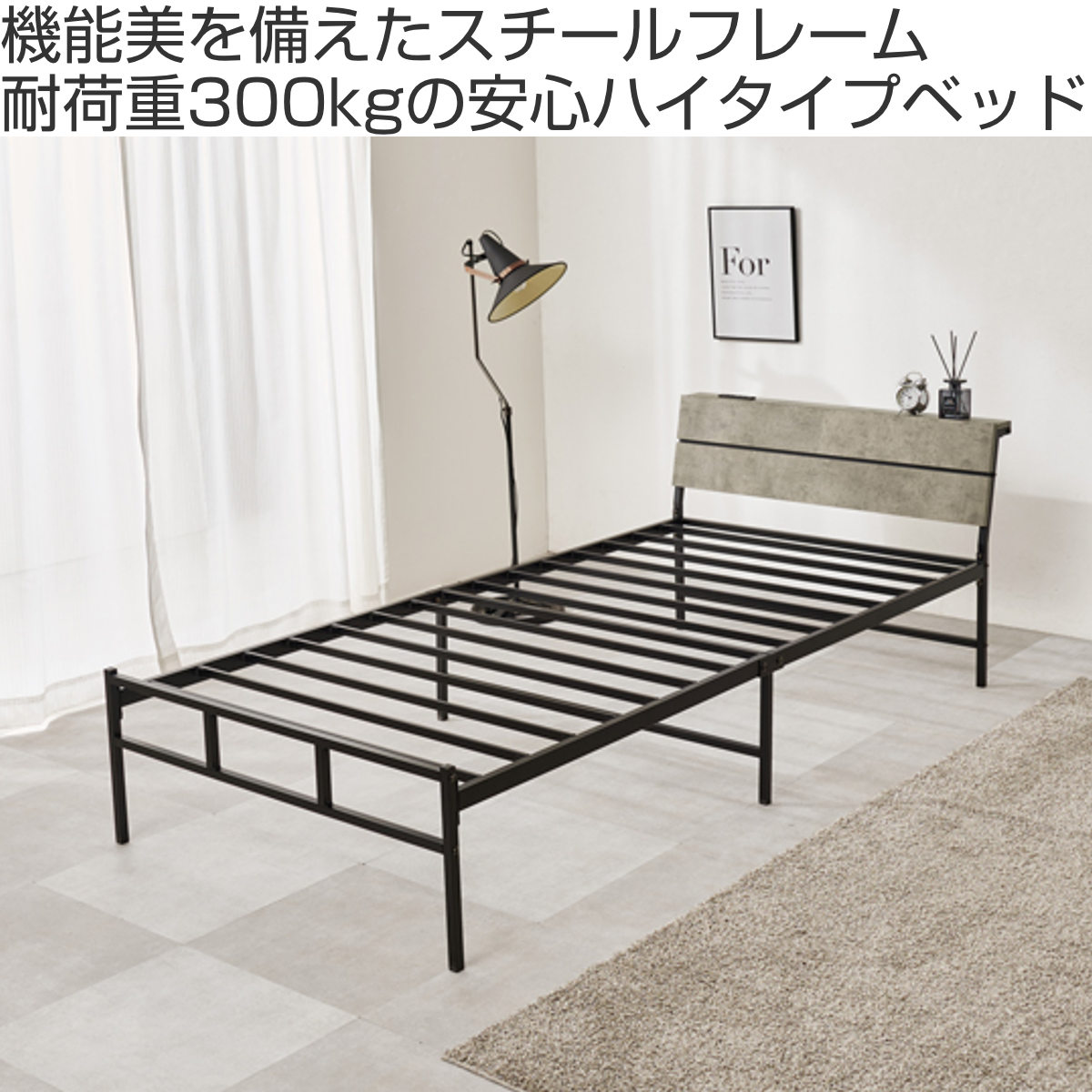 無骨で美しいスチールフレームのハイタイプベッドです。見た目もすっきり、無駄のない洗練されたデザインがお部屋を広く見せ、インテリアに自然に馴染みます。