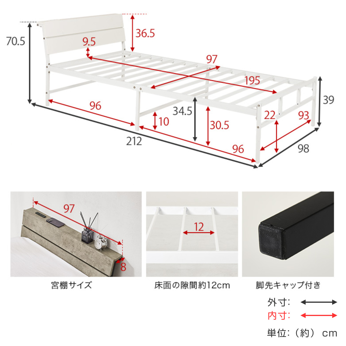 - 約幅98×奥行212×高さ70.5cm